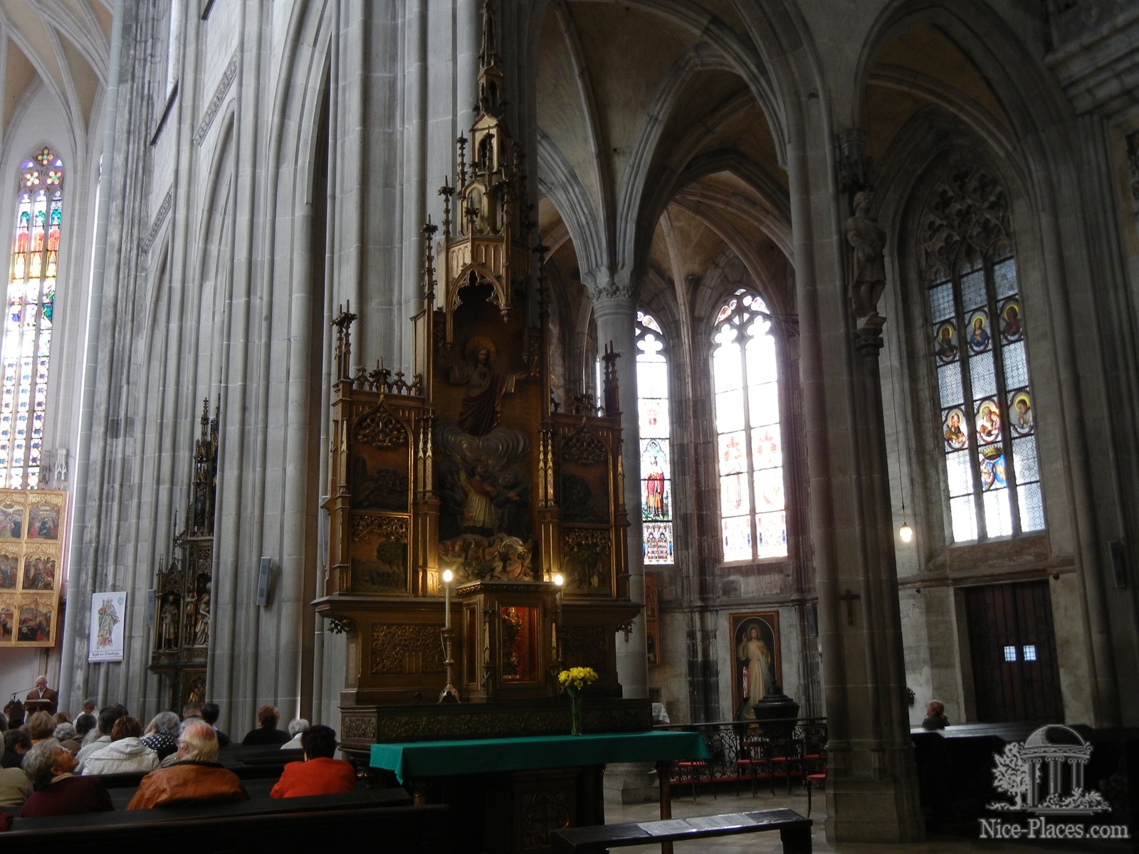 И уже совсем недавно, в 2009 году были закончены работы по восстановлению склепа князя Ракоци, в котором покоятся останки особо почитаемого борца за свободу словацкого народа от экспансивных устремлений Габсбургов, а также северного портала собора. На сегодняшний день готический Собор Святой Елизаветы представляет собой чудесную архитектурную жемчужину, сооруженную в форме греческого креста. Наиболее известной особенностью храма является тимпан «Страшный суд», украшающий его северный портал, а также внутренняя винтообразная лестница, похвастаться которой могут только лишь пять подобных сооружений в Европе. Эта каменная, вытертая веками лестница, приведет вас на вершину северной башни собора. Оттуда, со смотровой площадки откроется красивейший вид не только на Главную улицу, но и почти весь город. Не пожалейте на это 1,4 евро, именно столько стоит билет на высоту около 55 метров. Северная башня открыта для посещения только в будни дни.