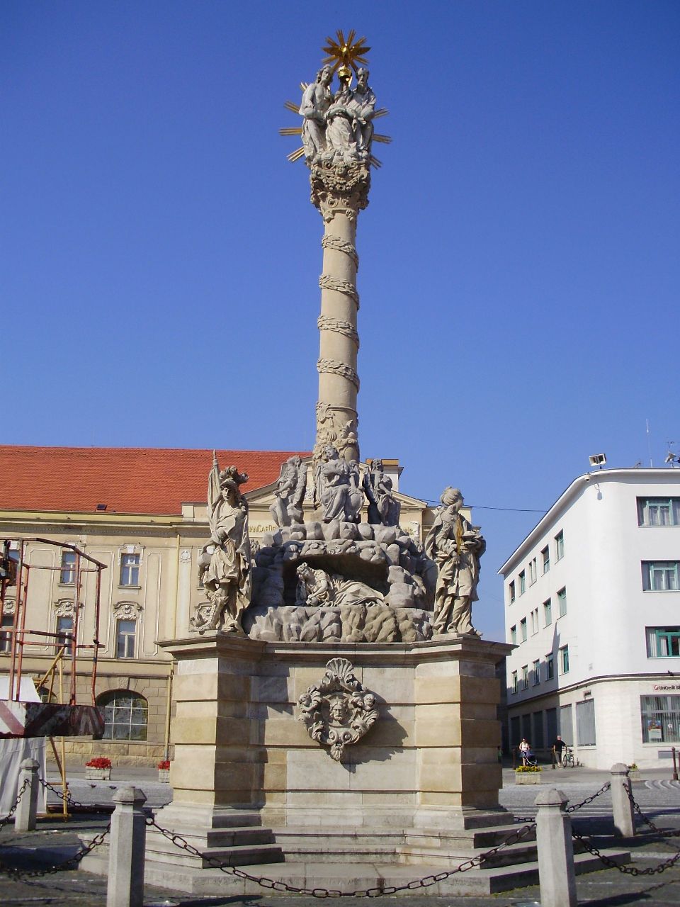Как это было принято в средневековых городах, страдавших от опустошительных эпидемий чумы, в центре площади был возведен чумной столб, который выражает благодарность горожан небесным покровителям города, избавившим их от этой напасти.