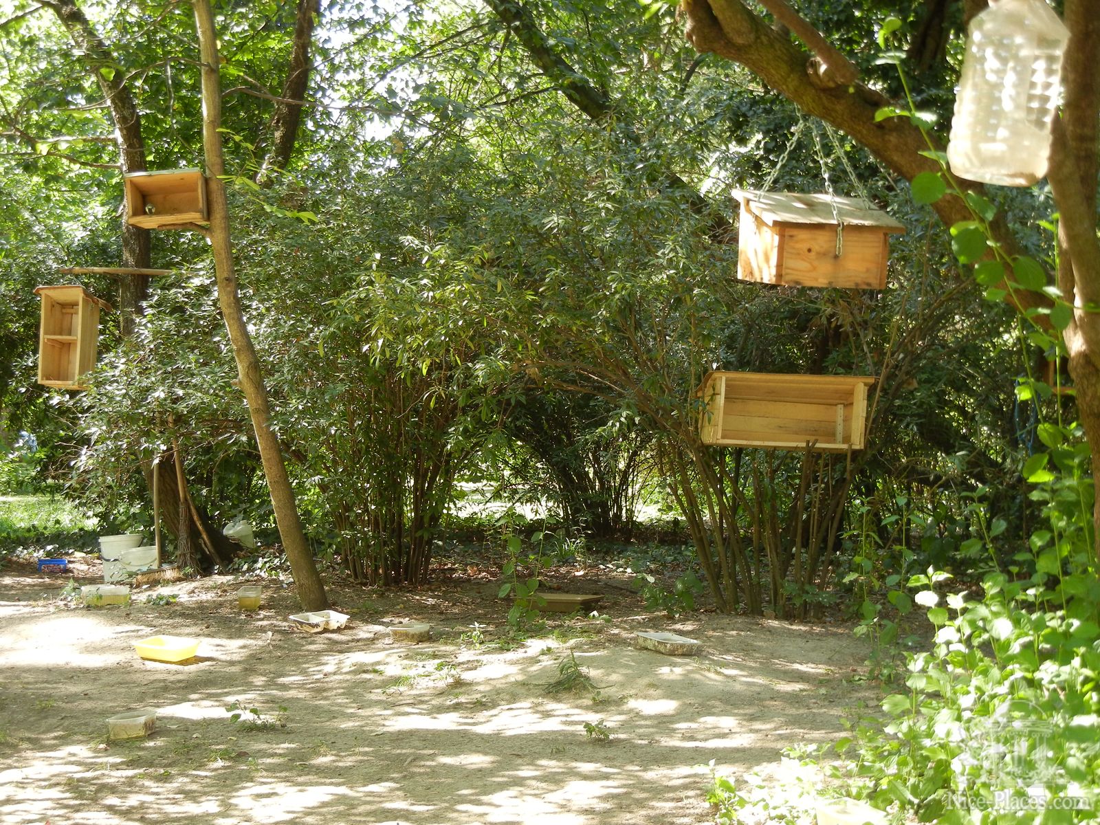 Далее мы дошли до городского парка, утопающего в зелени вековых деревьев, среди которых много сосен. Парк относительно небольшой, с фонтаном посередине, лужайками с зеленой травой и лавочками в тени аллей. Но нас, как любителей птиц, больше всего привлекла большая зона на краю парка с разнообразными кормушками и поилками для птиц. Скорее всего в голодную зимнюю пору здесь будет настоящий рай для орнитологов и просто любителей птиц. А чуть поодаль как раз установлен щит с описанием птиц, которые здесь можно увидеть. Пока на дворе лето, пернатых было не очень много - синицы, дрозды, дятлы, поползни, дубоносы, горлицы. Не обошлось и без рыжих красавиц — неоднократно попадались белочки.