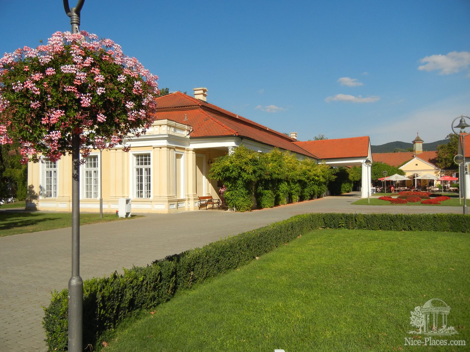 После массажа стоп мы прошли до конца парка и вышли на улицу Бетховена. Здесь мы увидели первые архитектурные достопримечательности Пештян: здание Бальнеологического музея и Купельна Дворана 1894 года, в котором размещается ресторация и концертный зал "Курсалон", а рядом летний театр под открытым небом. В Бальнеологическом музее находятся археологические находки, ценные этнографические матералы, документы с истории термальных источников в Словакии.