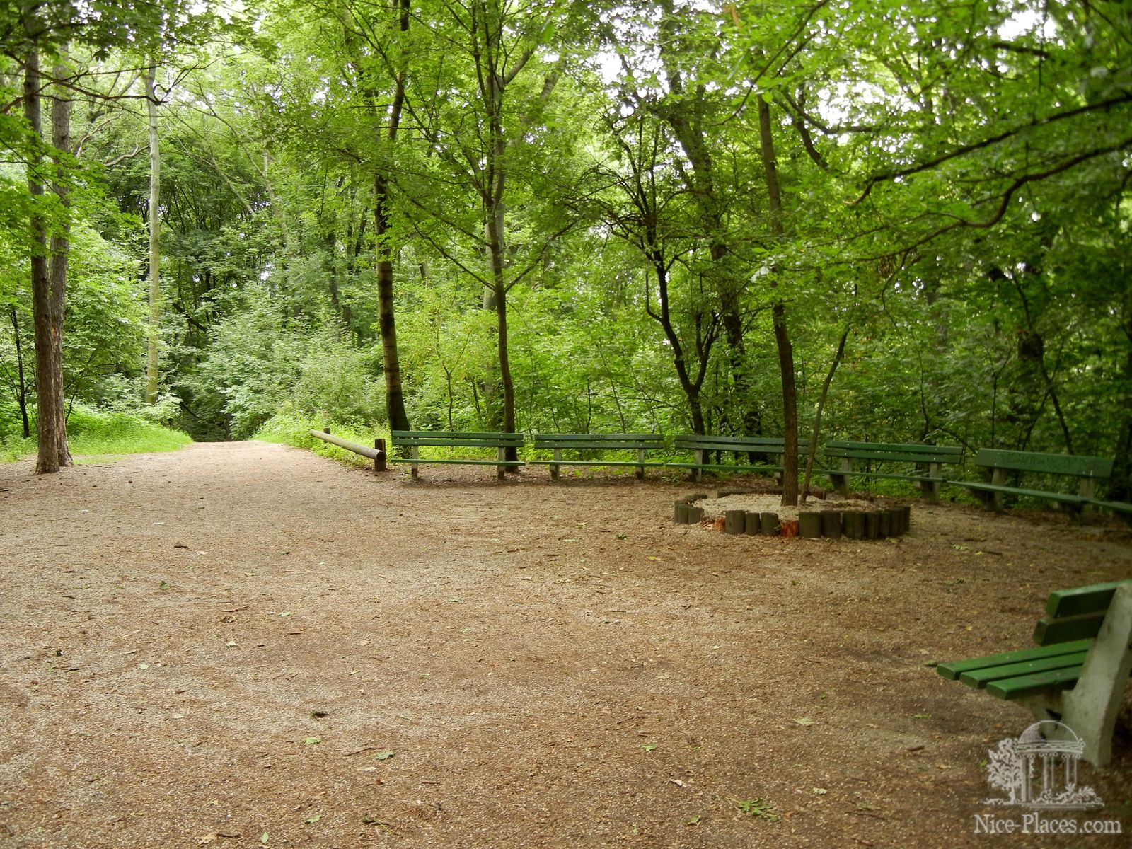 Зоны отдыха продуманы на всей территории парка, лавочек очень много, урн тоже, потому в лесопарке очень чисто. Присмотревшись, мы заметили, что почти на каждой лавочке есть табличка с именем. Видимо, это имена меценатов или простых людей, которые решили от своего имени подарить парку место для отдыха.