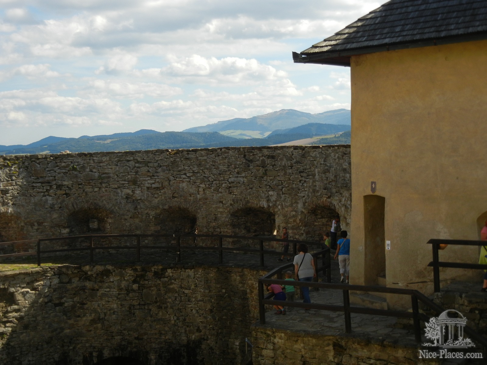 Крепость, хоть и частично в руинах очень живописна, полна жизни и энергии. Уже на входе вас встретят польские шляхтичны в соответствующих нарядах, во внутренних двориках тоже людно и шумно. Трудится над над жаровней кузнец, гордо прохаживаются оружейники и ключники, а если повезет, то попадете на рацарский турнир. Детишек порадуют большие шахматы, почти ростом с 7-ми летнего ребенка. Каждый час начинаются экскурсии по помещениям замка, рассказ идет на словацком, но по просьбе выдадут брошюру с текстом на русском языке.