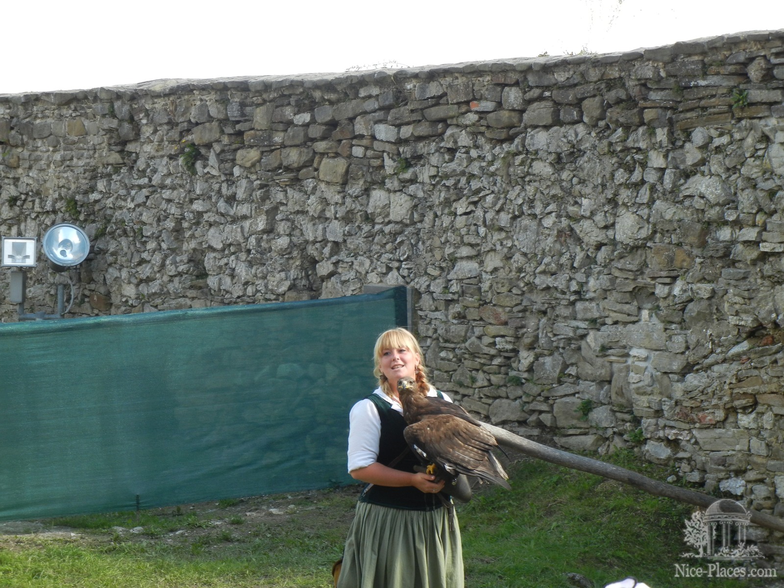 Несколько раз в день на верхнем дворе замка устаривается показательное шоу хищных птиц. Под интересные рассказы дрессировщиц о хищных птицах, над головами зрителей будут пролетать сокол, ястреб, пустельга или орел. Вблизи эти хищники очень эффектны, в конце шоу с ними можно будет бесплатно сфотографироваться или погладить.
