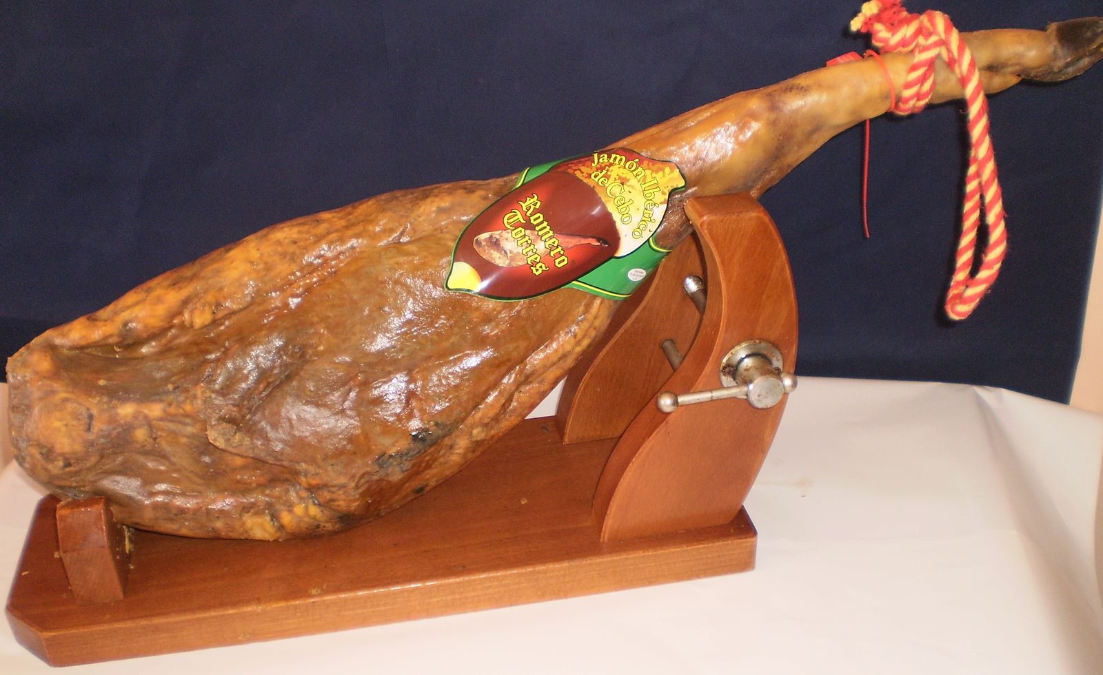 Традиционную для этой страны сыровяленую ветчину можно увидеть практически в любом испанском баре. Прямо к потолку подвешены внушительного вида свиные окорока, а один из них, початый, обычно закреплен в специальном станке на барной стойке. Это и есть хамон (jamon).