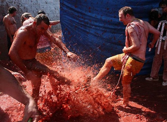 Только не надо думать, что люди приезжают сюда только для того, чтобы от души пошвырять друг в друга помидоры. Народ гуляет целую неделю и, кроме 12-часовой помидорной бойни, в программу праздника входят всевозможные концерты, выступления музыкантов, танцевальные вечера, фейерверки.