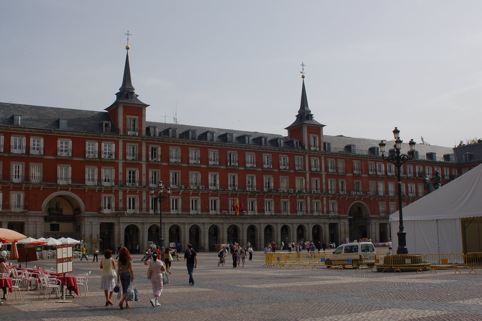 Дом мясника, где в былые времена находилась мясная гильдия, находится напротив, словно подчеркивая, что народу нужны и хлеб, и мясо. Архитектурный ансамбль площади насчитывает 136 домов, в которых проживает более 50000 жителей столицы. В праздники, когда площадь Майор переполнена людьми, можно увидеть стоящих на небольших балкончиках местных жителей, наблюдающих за празднованием и народными гуляниями. В былые времена жители наблюдали совсем другие сцены – брачные церемонии королей, бои быков, рыцарские турниры, казни и многочисленные аутодафе, устраиваемые безжалостной испанской инквизицией. В центре площади находится статуя короля Филиппа III, а по воскресеньям площадь наполняются торговцы старинными монетами и другим антиквариатом, и тогда она напоминает современный «блошиный рынок».