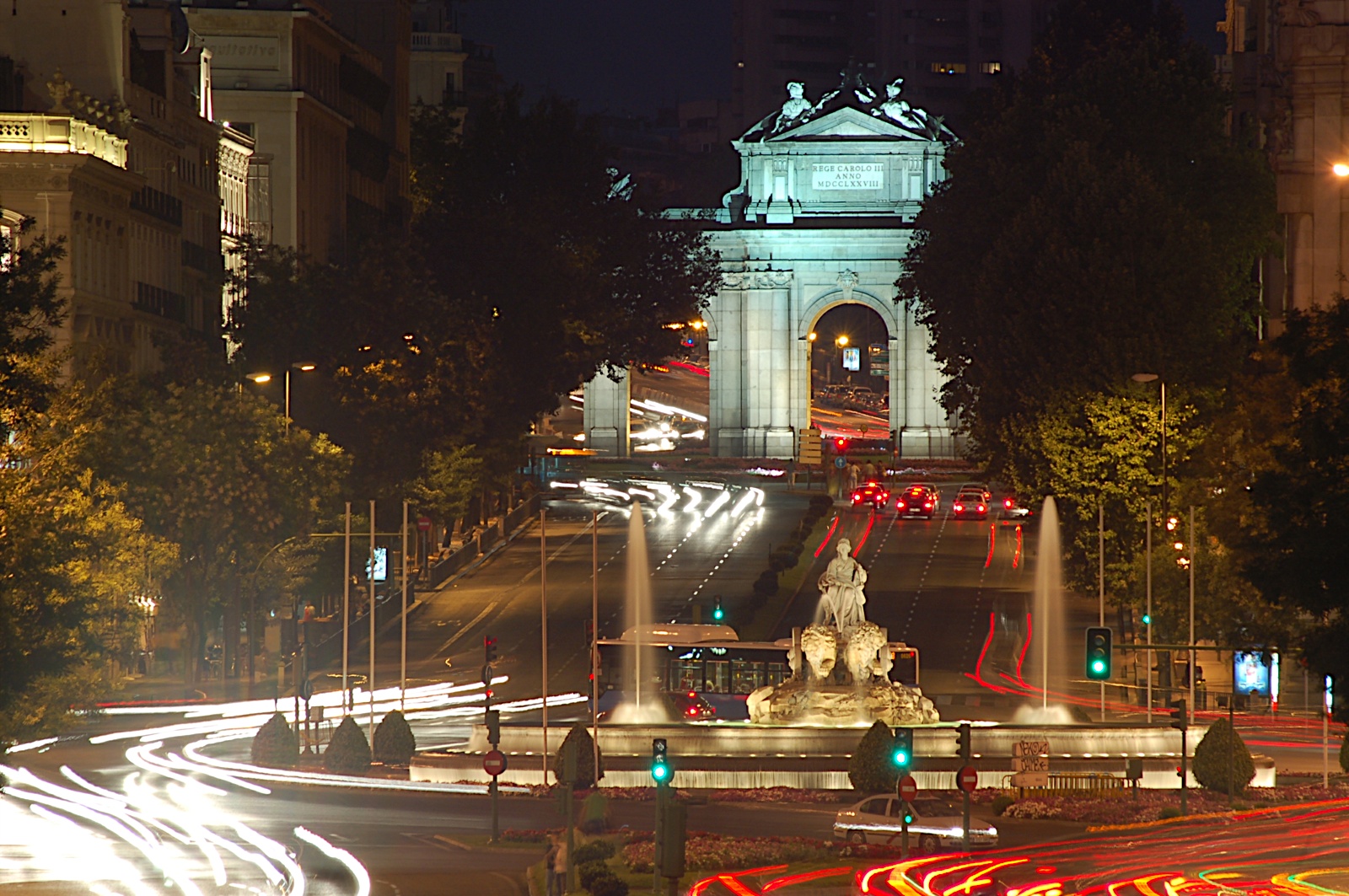 По соседству с площадью и фонтаном Сибелес достоин внимания еще один архитектурный шедевр – арка-ворота Алкала. Они были построены по указу короля Карла III наподобие триумфальной арки, чтобы украсить и обозначить въезд в город. Ворота Алкала выполнены в неоклассическом стиле по проекту итальянского архитектора Франческо Сабатини и украшены скульптурными композициями зодчих Франсиско Гутьерреса и Роберто Мичеля.