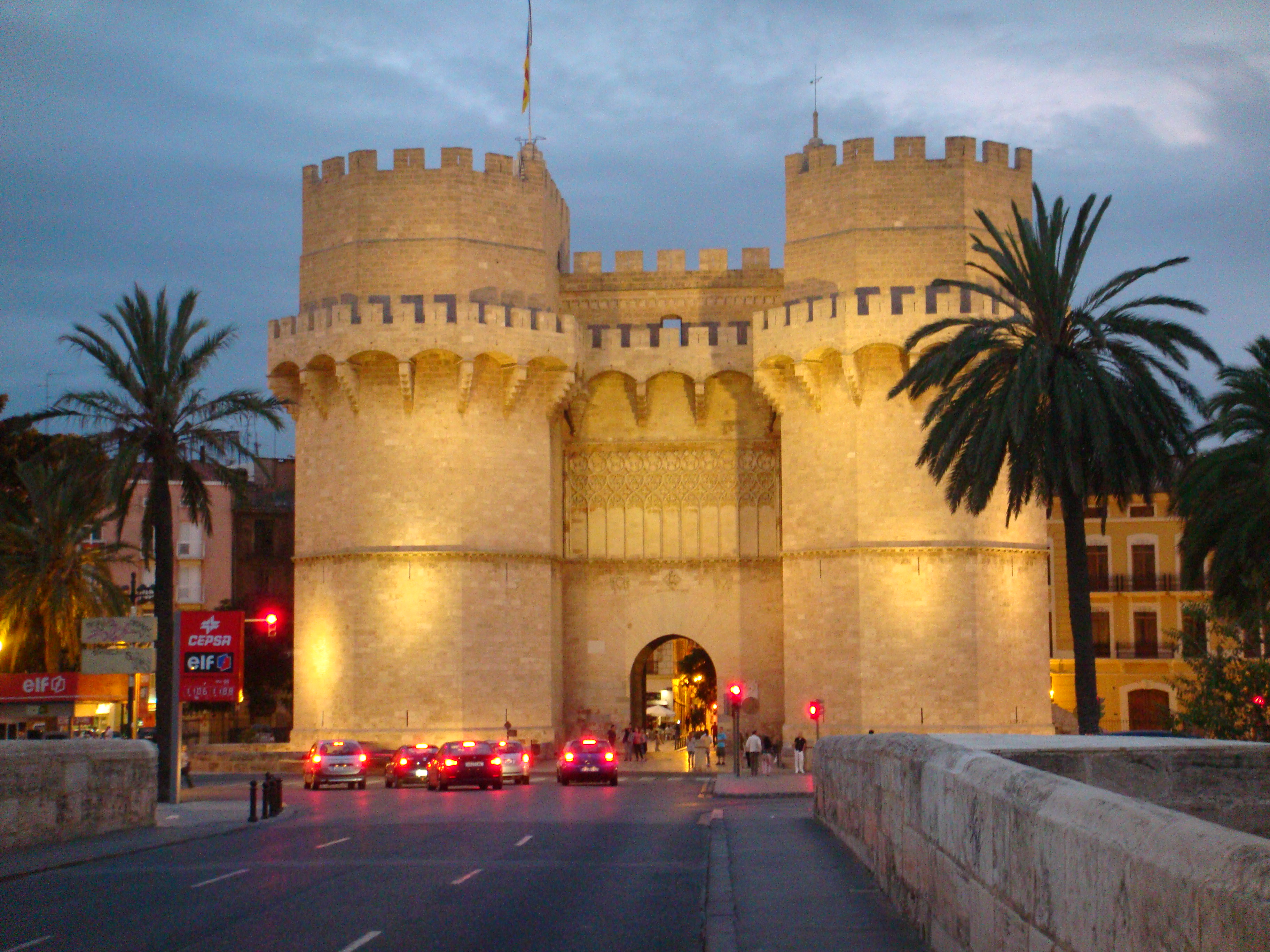 В северной части Валенсии на месте оборонительных сооружений рисской эпохи в 1398 году были построены новые укрепленные Ворота Торрес де Серрано в виде двух симметричных башен, соединенных между собой, сверху они украшены зубцами, выполнявшими в былые времена не только декоративную, но и оборонительную функцию. Вход в город осуществлялся через небольшой арочный проем. Теперь изменилась даже планировка города, а средневековые ворота стоят сами по себе, их можно обойти со всех сторон. В старинной башне, отреставрированной в 1930 году и предстающей перед туристами в первозданном виде, в настоящее время находится Морской музей, экспозиция которого охватывают уникальные находки, сделанные подводными археологами.