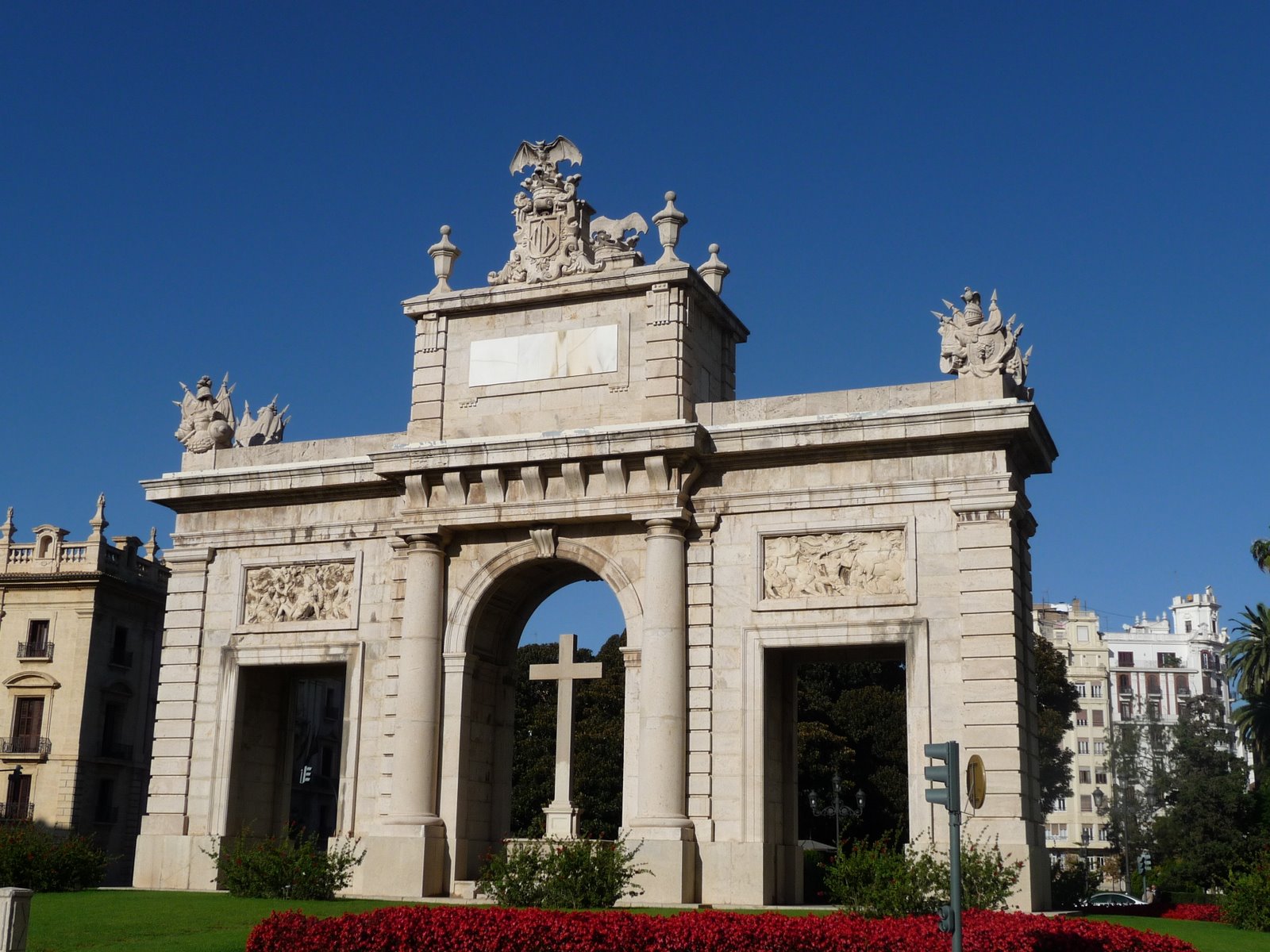 Главным украшением площади Пласа Порта де ла Мар, расположенной в исторической части Валенсии является величественная Триумфальная арка. А всего в нескольких кварталах от площади находится архитектурный ансамбль старинного монастыря Конвенто де Санто Доминго, основанного в эпоху средневековья. Самой старой постройкой монастырского комплекса считается Королевская капелла, построенная в XV столетии, здесь похоронены выдающиеся испанцы, включая Родриго Мендоса. Монастырский храм Санто Доминго, построенный в средневековья, не сохранился, на его месте находится точная копия восстановленного храма, реконструкция которого проводилась в XVIII столетии. Фасад храма, в которой можно зайти с прилегающей улицы, богато украшен барельефами и скульптурными композициями, а сверху фасад венчает стилизованный портик. В Архитектурный комплекс монастыря входит и величественная башня, но она так и осталась незавершенным строительством. К сожалений, монастырский комплекс, являющийся памятником испанского историко-культурного наследия, сейчас не используется по прямому назначению – в нем располагаются казармы.