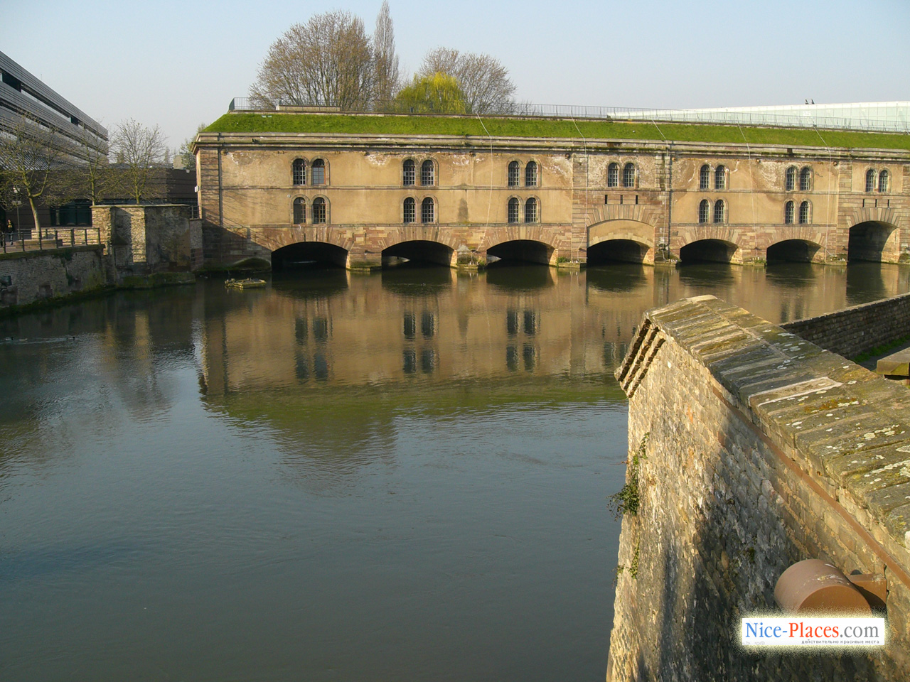 Особенно значение французские инженеры придавали место, где Иль – приток величественного Рейна разделялся на пять небольших каналов. Здесь и решено было возвести мощную плотину, отличающуюся большим количеством шлюзов. Проект инженера Вобана предусматривал особые задвижки, расположенные под тринадцатью арками необычного моста-каземата. При закрытии этих задвижек южную часть Страсбурга можно было затопить за очень короткое время, чтобы предотвратить внезапное нападение противника. В XIX столетии плотина Вобана была значительно надстроена, а сейчас она используется уже в качестве смотровой площадки, откуда открываются живописные виды старинной части Страсбурга.