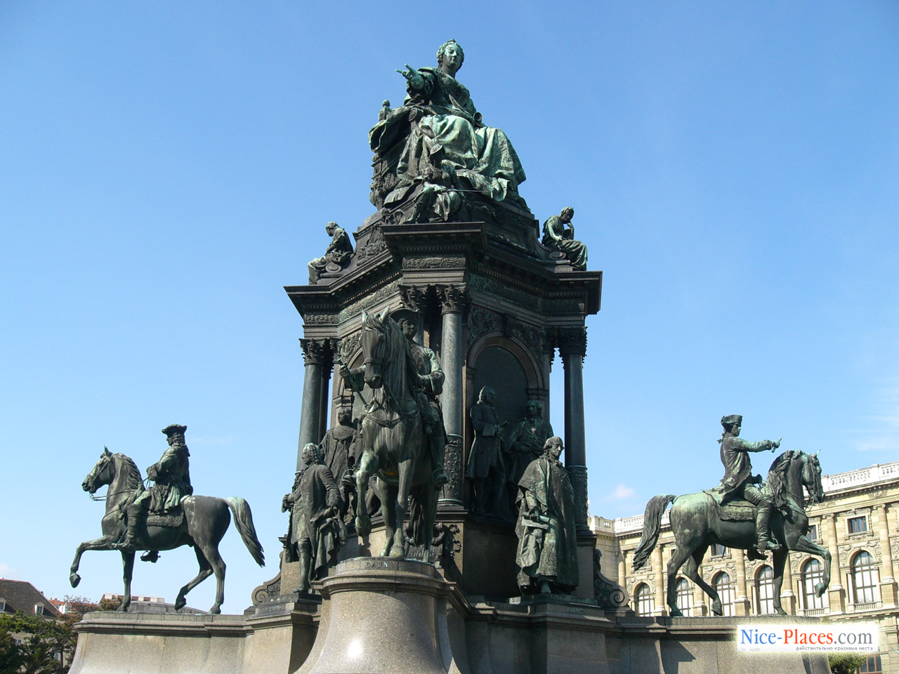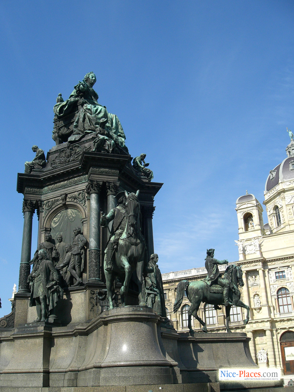 А по центру площади стоит памятник фигуре, давшей имя всему этому великолепному ансамблю — фигура императрицы Марии Терезии в окружении полководцев.