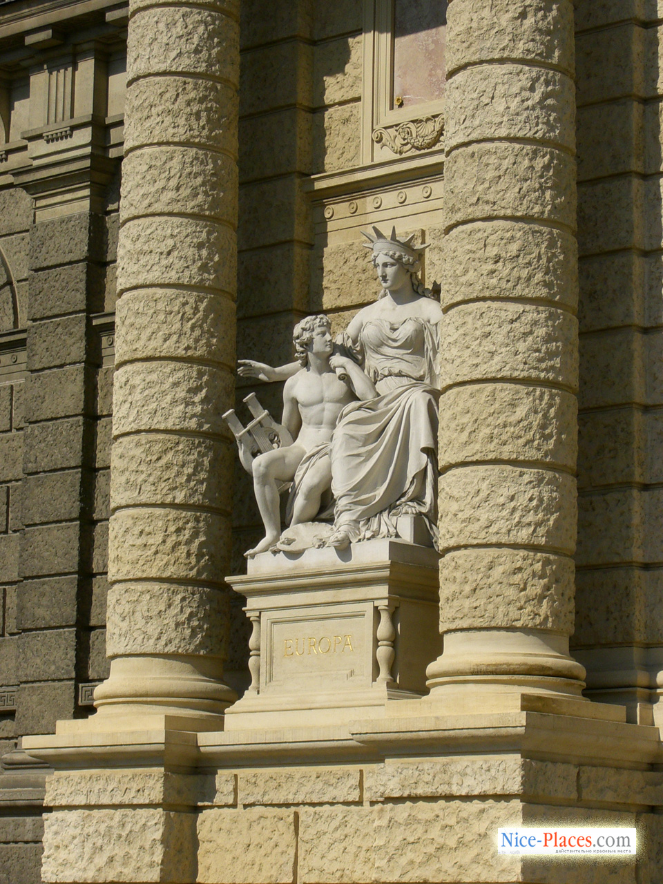 Выйдя из Бурггартена на Ринг как раз рядом с памятником Моцарту, вы оказываетесь в зоне мегапроекта Земпера: именно здесь через Ринг, от здания Нового замка к зданию Художественно-исторического музея, должна была быть перекинута гигантская триумфальная арка; аналогичную конструкцию предполагалось возвести напротив. Единственное, что удалось осуществить, — это просторная площадь Марии Терезии (Maria Theresien Platz) на другой стороне Ринга, с двумя абсолютно одинаковыми зданиями, Художественно-исторического музея и Музея естественной истории, застыло уставившимися друг на друга. Музеи сидят на своих местах низко, крепко и вечно, как Мария Терезия в своем тяжелом кресле (вид сзади на памятник весьма выразителен), а сам факт того, что они совершенно одинаковы, придает композиции несколько абсурдный характер, особенно ощутимый зимой, когда вокруг так бело, неуютно и абстрактно.