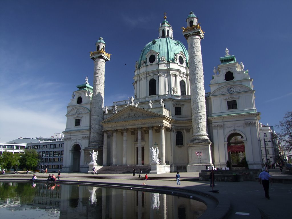 1713 год – поистине страшная чума прокатилась по Австрии. Карл IV Габбург дает обет построить храм в честь … естественно, Святого Карла, избавителя от чумы. Дело серьезное – объявлен конкурс, который выигрывает уже достаточно известный, почти «придворный» архитектор Иоганн Бернхард Фишер фон Эрлах...