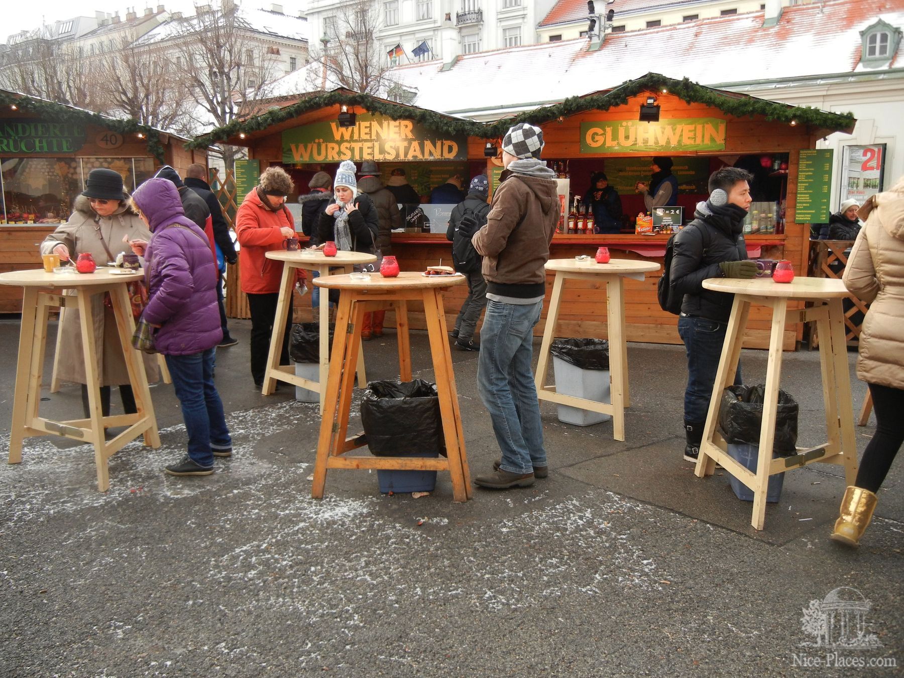 Но есть и обратная сторона: большой наплыв туристов, особенно на выходных. Отсюда вытекает, что все кафе и бары заняты, свободного места можно в нескольких кварталах просто не найти. В итоге, негде погреться и быстро устаешь от шума и суеты на улицах. Мы нашли только одно место, куда можно наверняка зайти погреться и отдохнуть — это холл Народного театра (Бургтеатр), что напротив городской Ратуши. Если посчастливится попасть внутрь Ратуши, то там тоже можно согреться.
