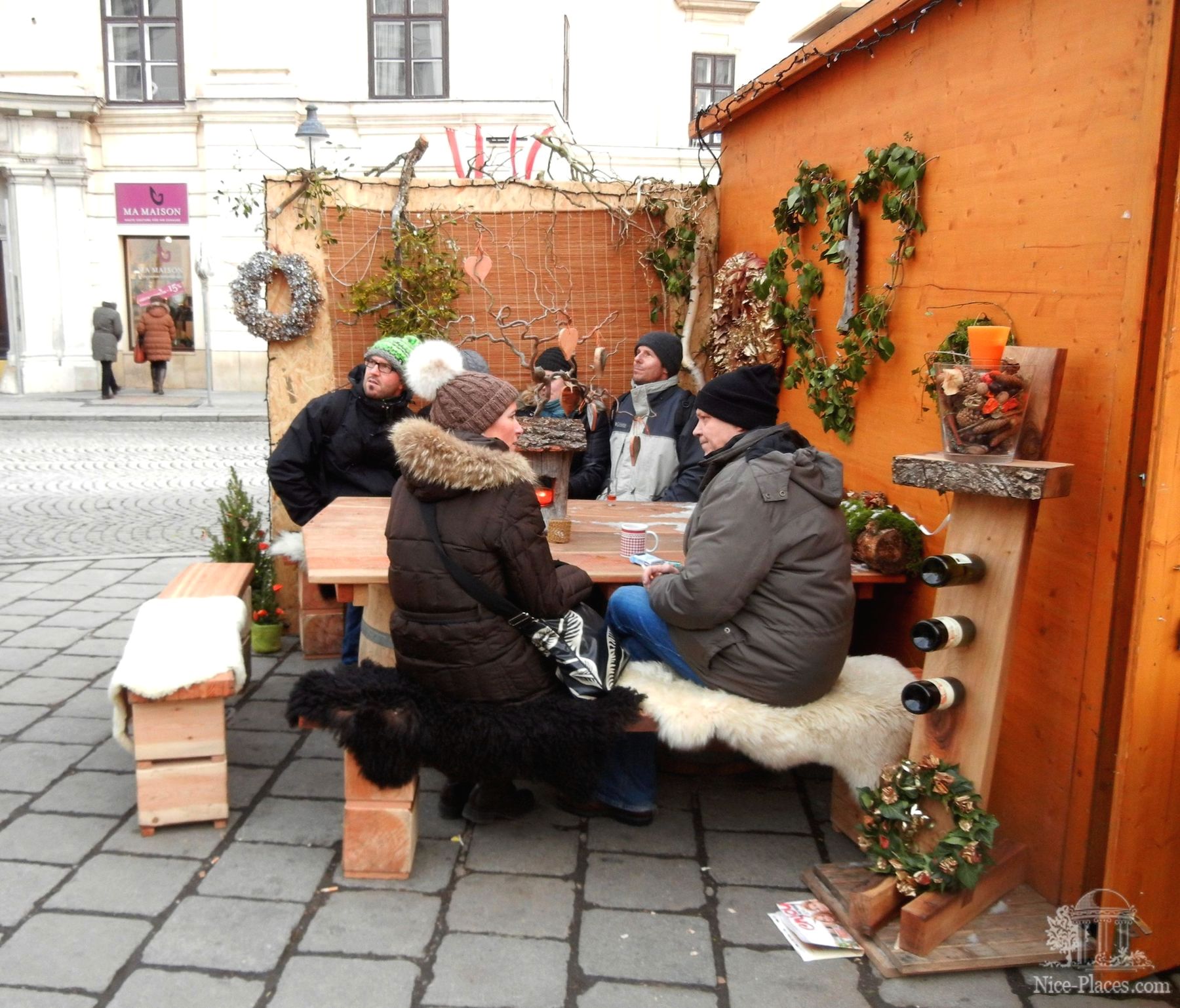 Что касается организации ярмарки в Шенбрунне, здесь нам понравилось больше всего. Места для приема пищи оборудованы навесом, лавочками и даже инфракрасными обогревателями. Такого даже на главной ярмарке у Ратуши не было. Туалеты платные, 50 центов, но туалет внутри замка бесплатный. Еще Шенбрунн порадовал отсутствием людских толп и, соответственно, очередей у павильонов с едой.