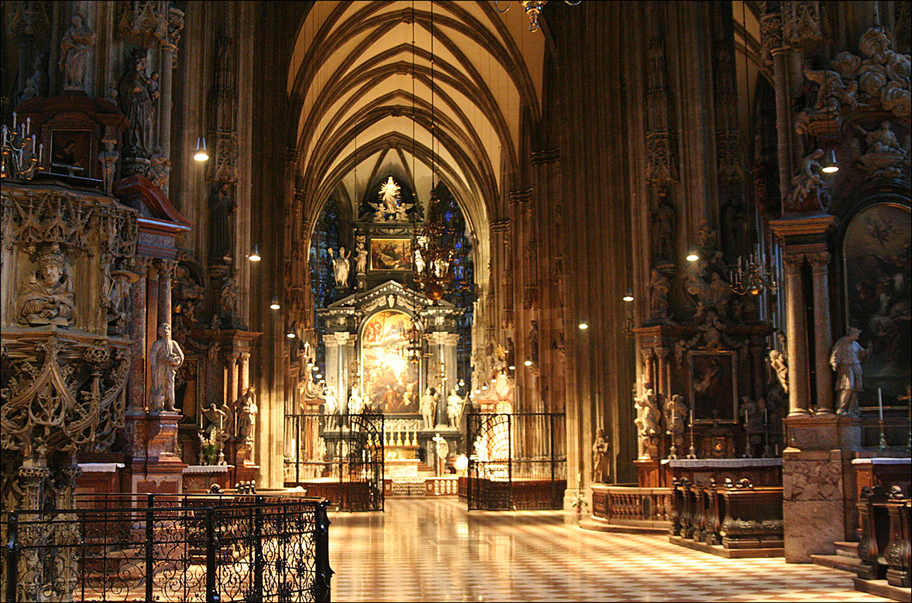 Сердце австрийской столицы – собор святого Стефана, или Штефандом, куда обязательно приходит каждый путешественник, оказавшийся в Вене. Он считается одним из самых значительных готических строений в Австрии. Его строительство началось в 1137 году. Правда, от первоначальной постройки остались только некоторые архитектурные детали, например, портал и ряд древних башен на западном фасаде. Штеффл, как его нежно называют венцы, напоминает шкатулку с драгоценностями, которую можно осматривать и час, и два, и то все не увидеть. Вход в собор является свободным, плата взимается лишь за посещение катакомб и двух башен: южной, высота которой достигает 136,7 метра, и северной высотой 60,6 метра, на которой расположен самый тяжелый колокол Австрии Пуммерин. На смотровую площадку северной башни поднимает лифт, поэтому билет сюда будет на 1-1,5 евро дороже, чем на южную башню, куда ведут 343 ступени.