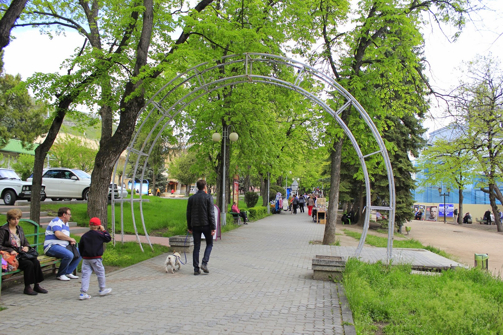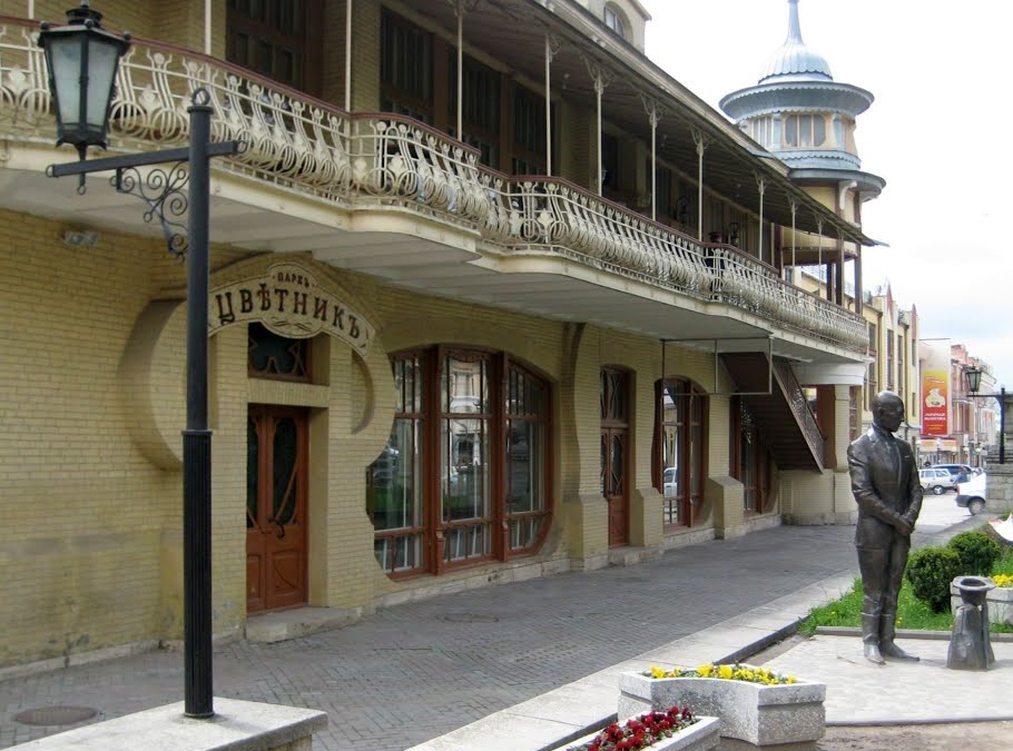 Вход в «Цветник» охраняет бронзовый персонаж Ильфа и Петрова из «Двенадцати стульев» Киса Воробъянинов, просящий милостыню. Ведь именно в Пятигорске разворачивалось действие романа.