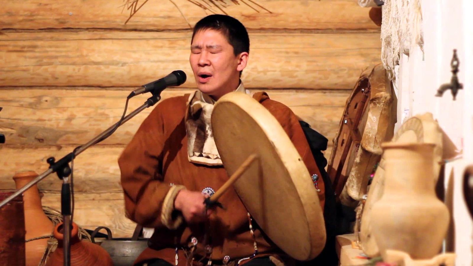 Есть еще один удивительный музыкант в Этномире – Андрей Умья — Кит-Кит. По национальности он коряк и родом с Камчатки. И конечно Андрей прекрасно знает песенные традиции коренных жителей этого полуострова.