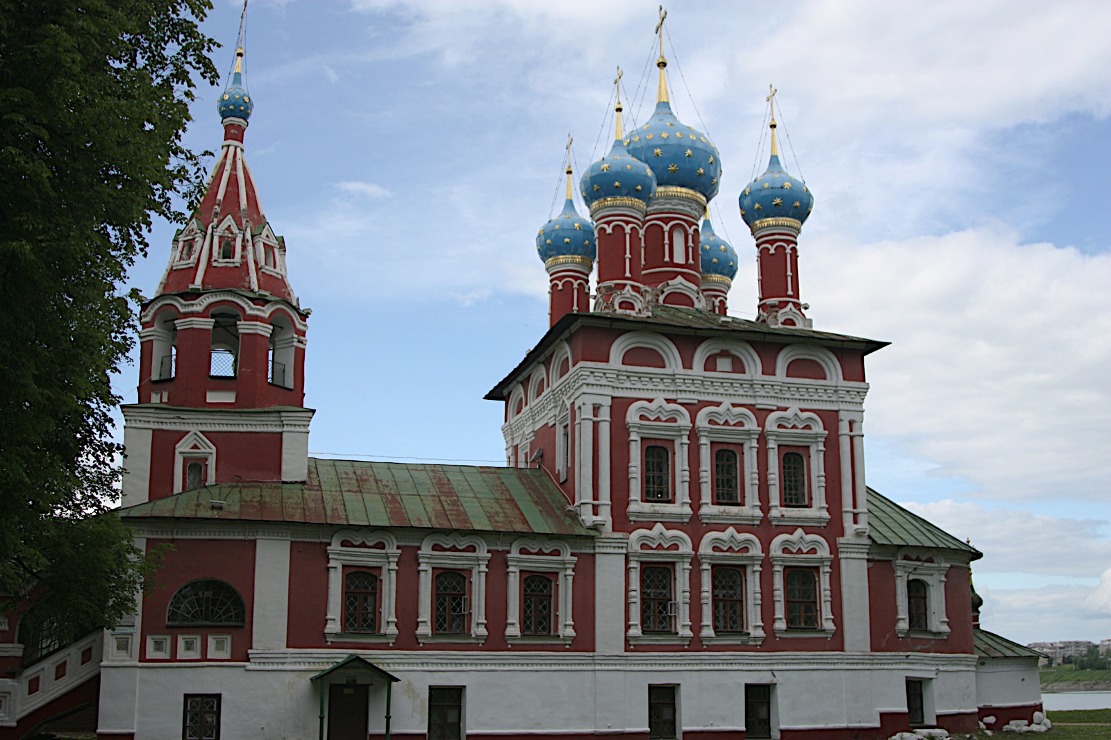 Первый из них — это, конечно же, Палаты угличских князей. Построены они были князем Андреем Горяем, братом царя Ивана III, в середине шестнадцатого века. В то время в Угличе велось большое строительство и, как показывают раскопки, палаты — только часть величественного Княжеского дворца. Остальные постройки, скорей всего, были выполнены из дерева и до наших дней не сохранились. Еще один памятник архитектуры, который обычно удостаивается внимания туристов, — церковь Димитрия-царевича на крови. Возведенная на том месте, где был убит малолетний наследник, она возвышается на крутом берегу Волги, в северо-восточной части Угличского кремля. Выстроенная в декоративно-нарядной манере, она производит сильное впечатление, не благодаря своим размерам, они достаточно скромные, а в силу нестандартной архитектуры и памяти о тех событиях, которые стали причиной ее появления.