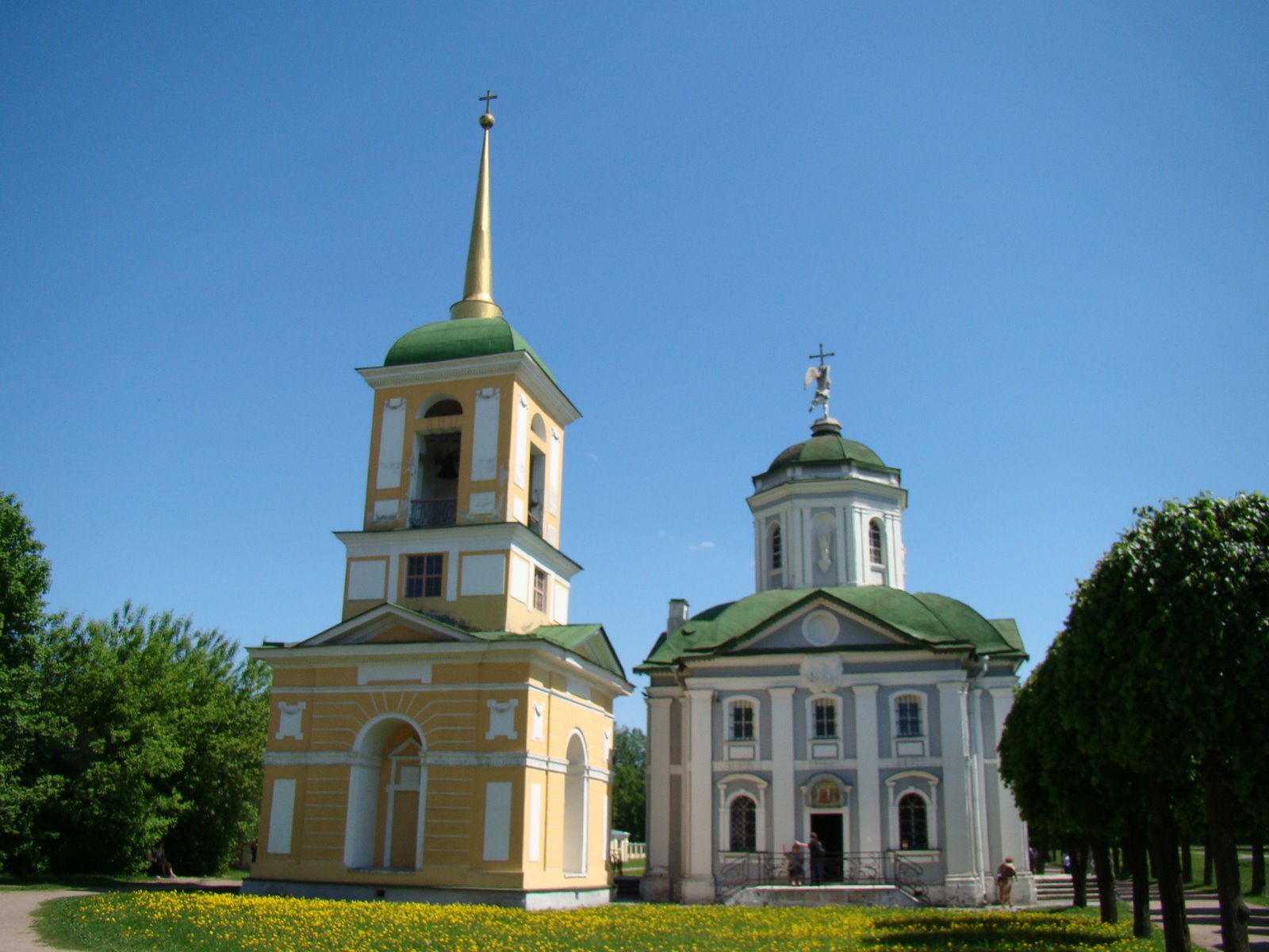 В центре усадьбы располагался венец архитектурного творчества – Дворец. Здесь же, по берегам Большого пруда, расположились колокольня, церковь, флигель кухни. При проведении гуляний по пруду скользили ярко убранные челноки, парусная яхта с пушками, превращая водную гладь в сценическую площадку для разыгрывания морских сражений.