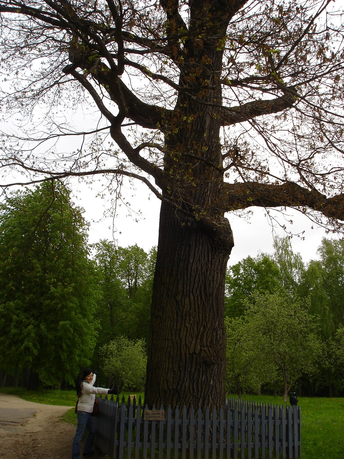 Во время прогулки по усадьбе, мы сможем увидеть большую зеленую лужайку, на которой растет трехсотлетний дуб, вызывающий в памяти пушкинское Лукоморье… Так и кажется, что на этом дубе вот-вот появится русалка или, на худой конец, ученый кот. Позади лужайки мы увидим белое двухэтажное здание, олицетворяющее колониальный стиль. Это – здание лечебного корпуса, которое было построено в 30-х годах прошлого века. Именно здесь Мухина создала макет своих известных «Рабочего и колхозницы».