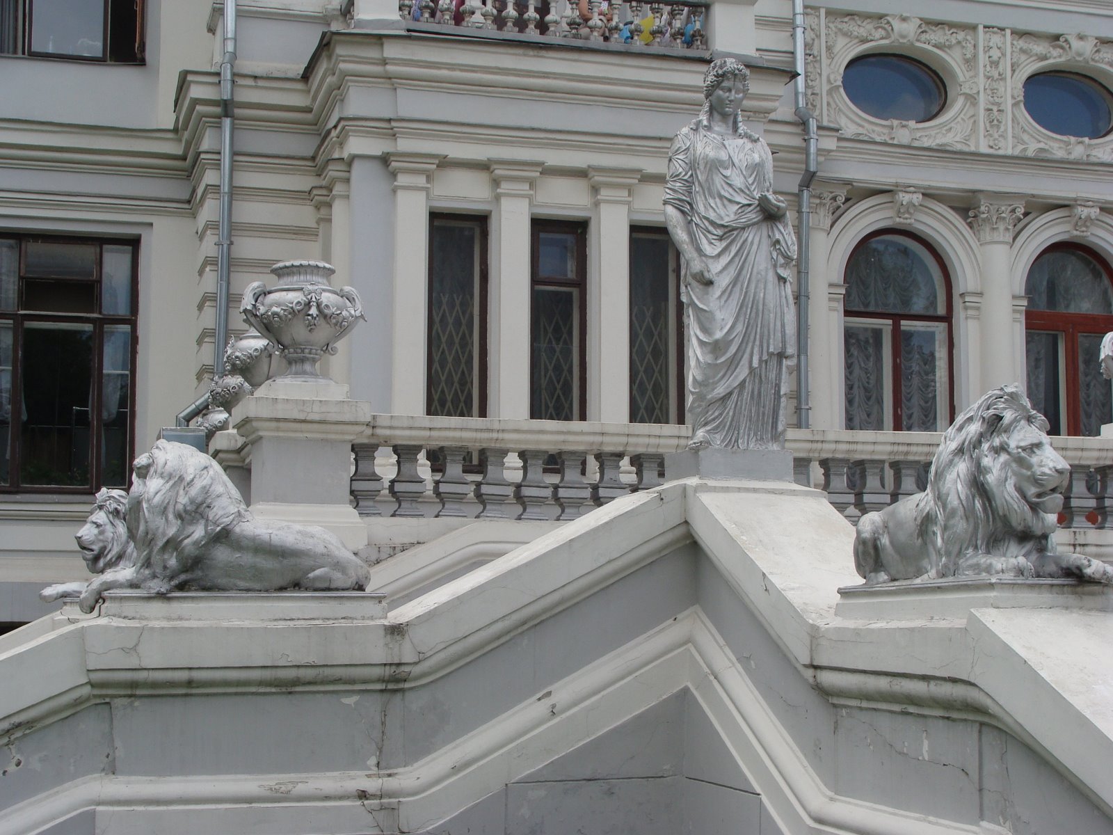 Здания бывшего имения до сих пор занимает больница восстановительного лечения, поэтому осмотреть главные достопримечательности усадьбы Грачевка можно лишь с фасада. Но все равно постройки, окрашенные в белый цвет, вызывают восхищение. К входам внутрь ведут широкие каменные лестницы, рядом с которыми можно увидеть необычные скульптурные композиции, уже посеревшие от времени. Перила террасы украшены каменными амфорами в античном стиле, а вдоль лестницы расположены огромные скульптуры могучих львов, словно охраняющих вход в старинный особняк.