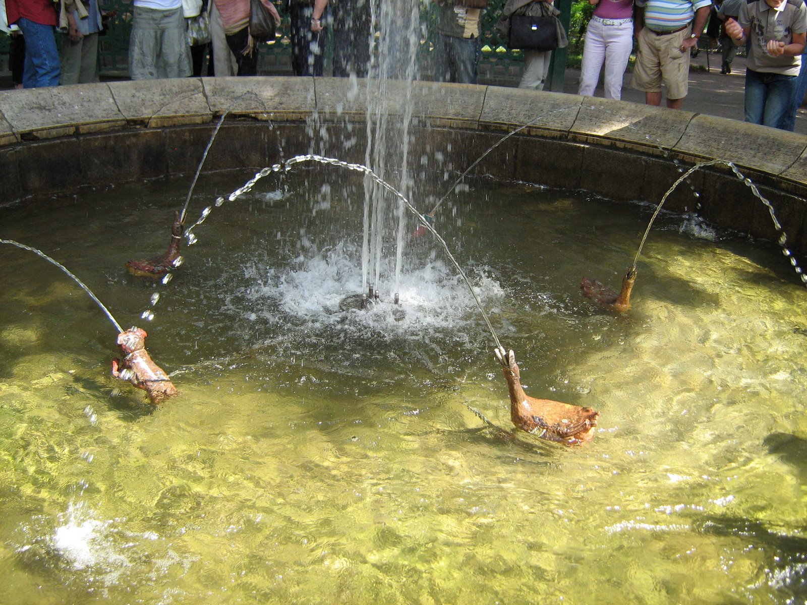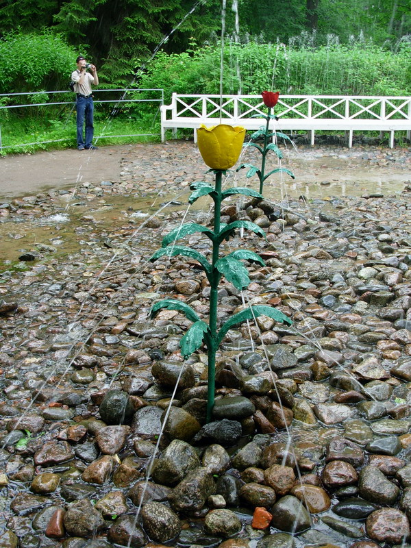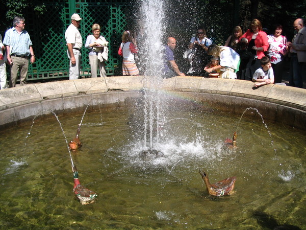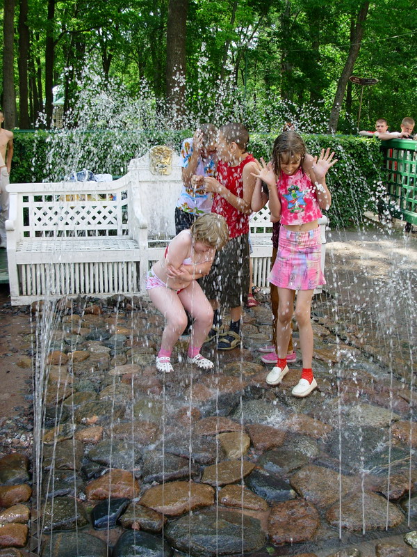 Подобными сюрпризами, прозванными шутихами, парк наделен щедро. Водные струи подстерегают незадачливого посетителя средь ветвей и цветов, на скамейках и аллеях, вызывая, вот уже который век, смех и радость. Детвора любит плескаться в этих задорных струйках воды, вырывающихся прямо из земли, веселя и детей и взрослых.