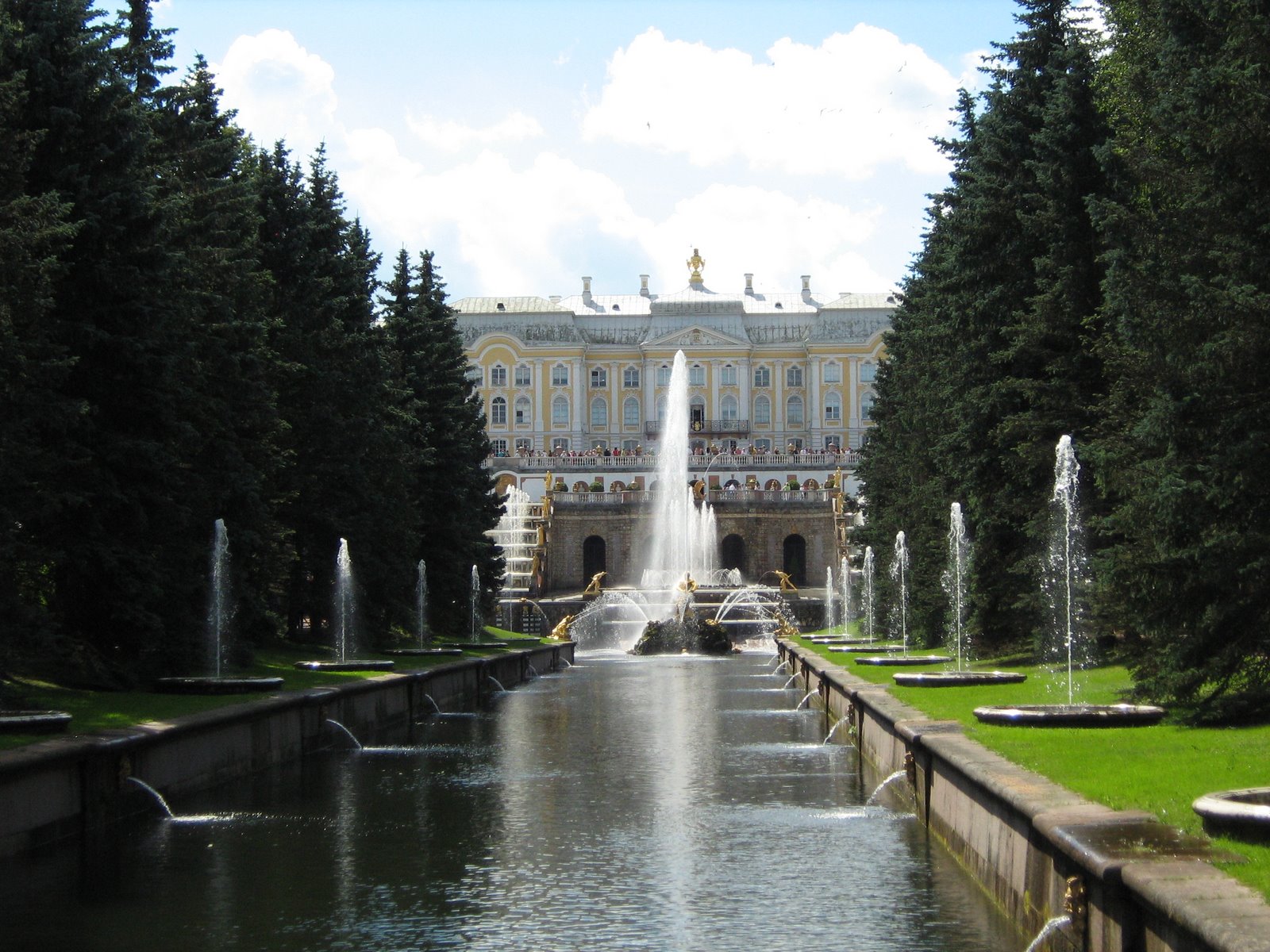 Большой каскад нередко сравнивают с оркестром, где каждый инструмент исполняет свою мелодию, но все вместе они сливаются в едином грандиозном музыкальном произведении. Струи бьющей в небо воды, золотой блеск статуй, радужное сияние водяной пыли, зелень садов и синева морских волн рождают торжественную и прекрасную симфонию Большого каскада.