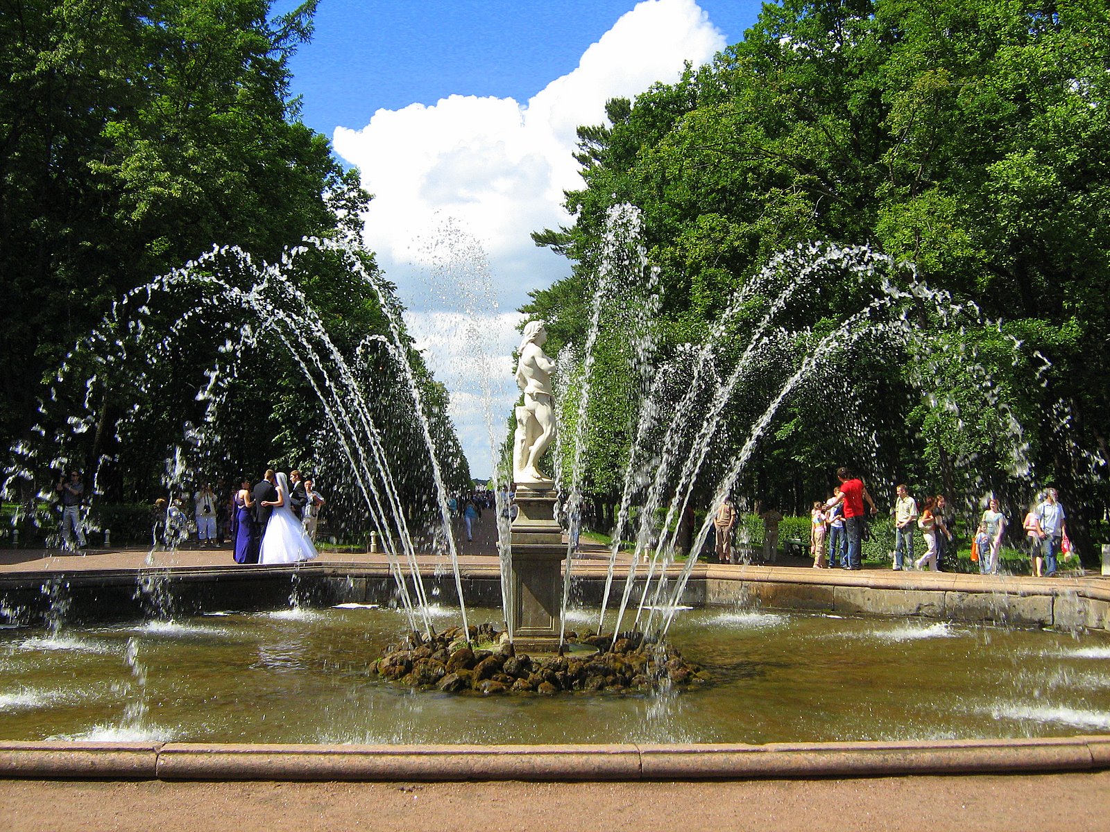 505 вертикальных струй фонтана "Пирамида" вновь заставляют изумиться выдумке и хитроумию мастеров, создававших красоты Петергофа. Сложная инженерная конструкция регулирует напор и придает фонтану его пирамидальную форму. Целое сооружение, выстроенное посредством одной лишь только воды поражает воображение.