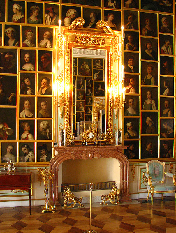 В следующей от люстгауза восточной галерее, что ведет в покои дворца, многочисленные полотна словно являются частью дубовых стенных панелей. Не отапливаемая и продуваемая ветрами галерея в Петровские времена отнюдь не была идеальным хранилищем для предметов живописи, но струящийся из больших окон свет, так удачно подсвечивает картины.