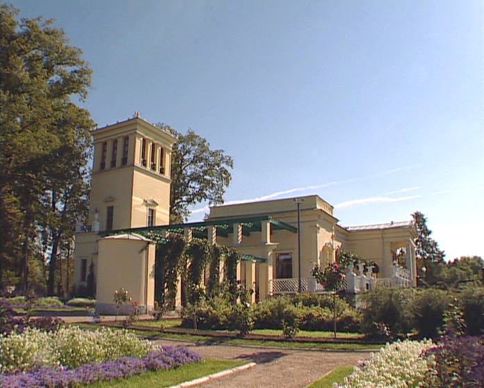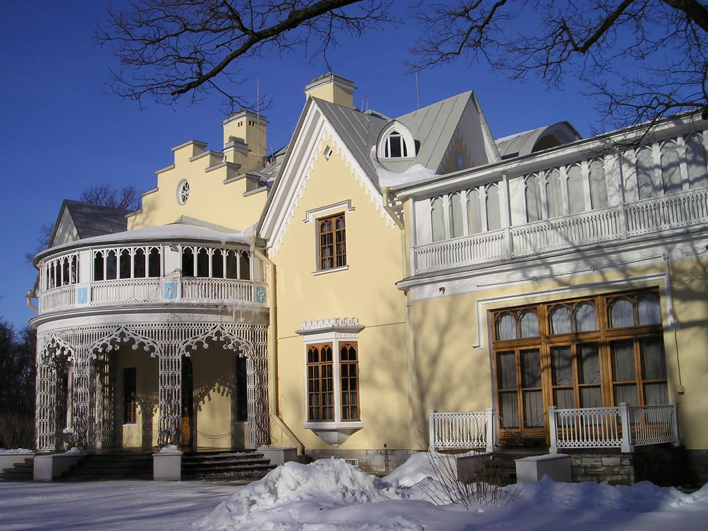 Готическая капелла Александра Невского. Императорской семье, переезжавшей на лето в коттедж, была необходима домовая церковь. Николай I сам выбрал для нее место, а во время своей поездки в Берлин заказал проект крупнейшему немецкому зодчему того времени Карлу Фридриху Шинкелю. Он был знаменит своими работами в стиле неоготики, как нельзя лучше соответствующему месту, где находилась усадьба Александрия.