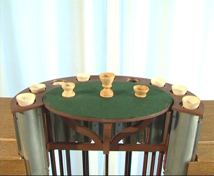 На втором этаже здания в одном из залов интересен большой овальный стол, уставленный расписной синим кобальтом на голландский манер посудой. Приборов здесь всегда было ровно на 14 персон, столько же и стульев вокруг стола. Обусловлено это было удивительной конструкции подъемного механизма, доставляющего напитки и яства с первого служебного этажа. Хитроумное устройство позволяет опускать и поднимать центральную его часть, а также отдельные тарелки, стоящие в отдельных углублениях на деревянных подставках, называвшихся в прежние времена исподнями и располагавшимися над узкими, ведущими вниз шахтами.Возле каждого из гостей находился шнур, соединенный с собственным колокольчиком, который подавал слугам сигнал, что пора забрать прибор или заменить то или иное блюдо. А в случае, когда гость желал отведать чего-то особенного, достаточно было вложить записку в отправляющуюся вниз (на кухню) тарелку.