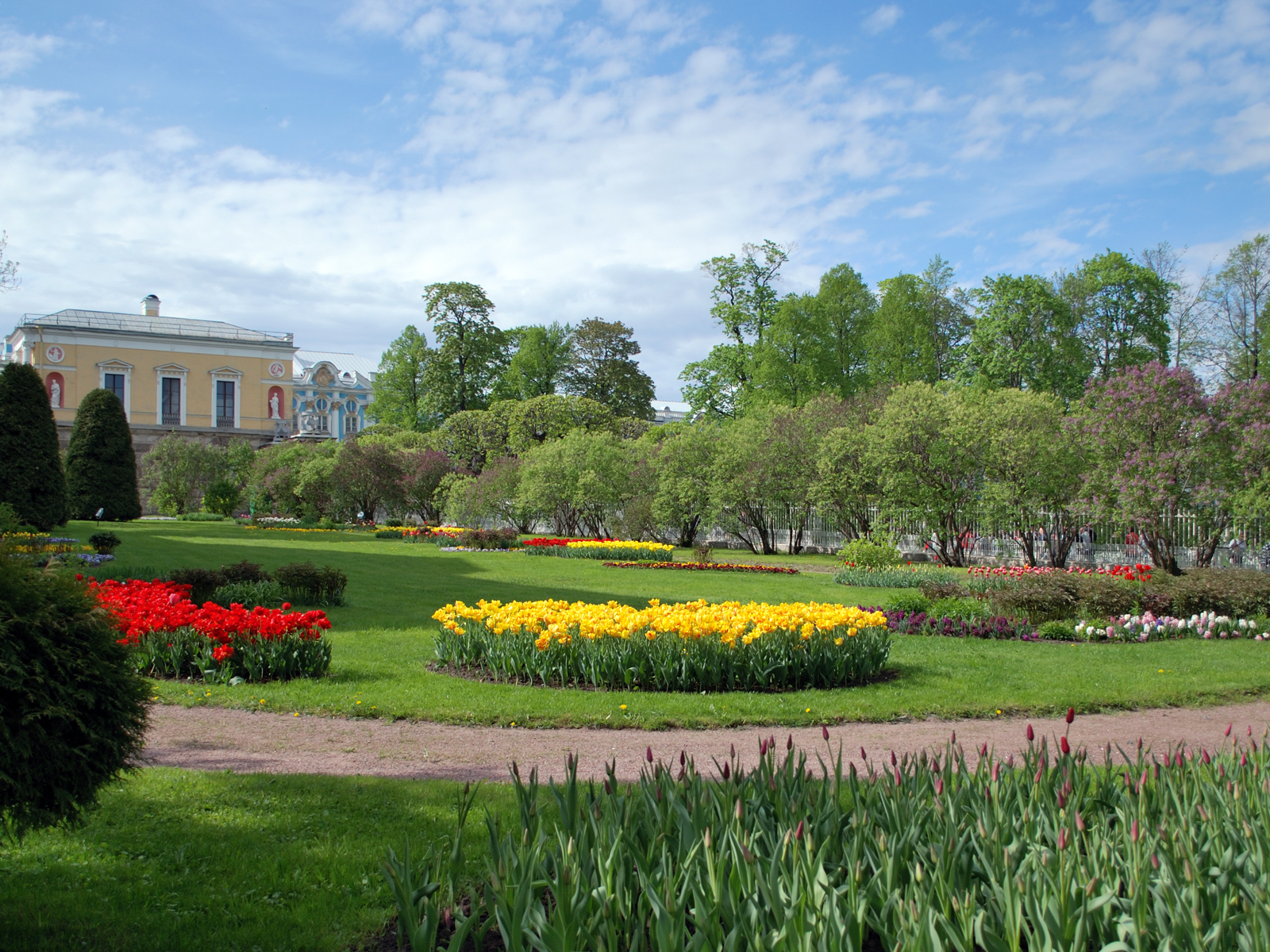 Тогда модные в XVIII веке пейзажные английские сады пришли на смену регулярным французским. С тех пор деревья в Александровском парке больше не подстригались, их подбирали специально по цвету листвы в разное время года. В 1817 году в там высадили тысячу клёнов, лип, вязов, декоративных кустарников из Петербургских садов, а некоторые – тис, самшит приобретались в Гамбурге.