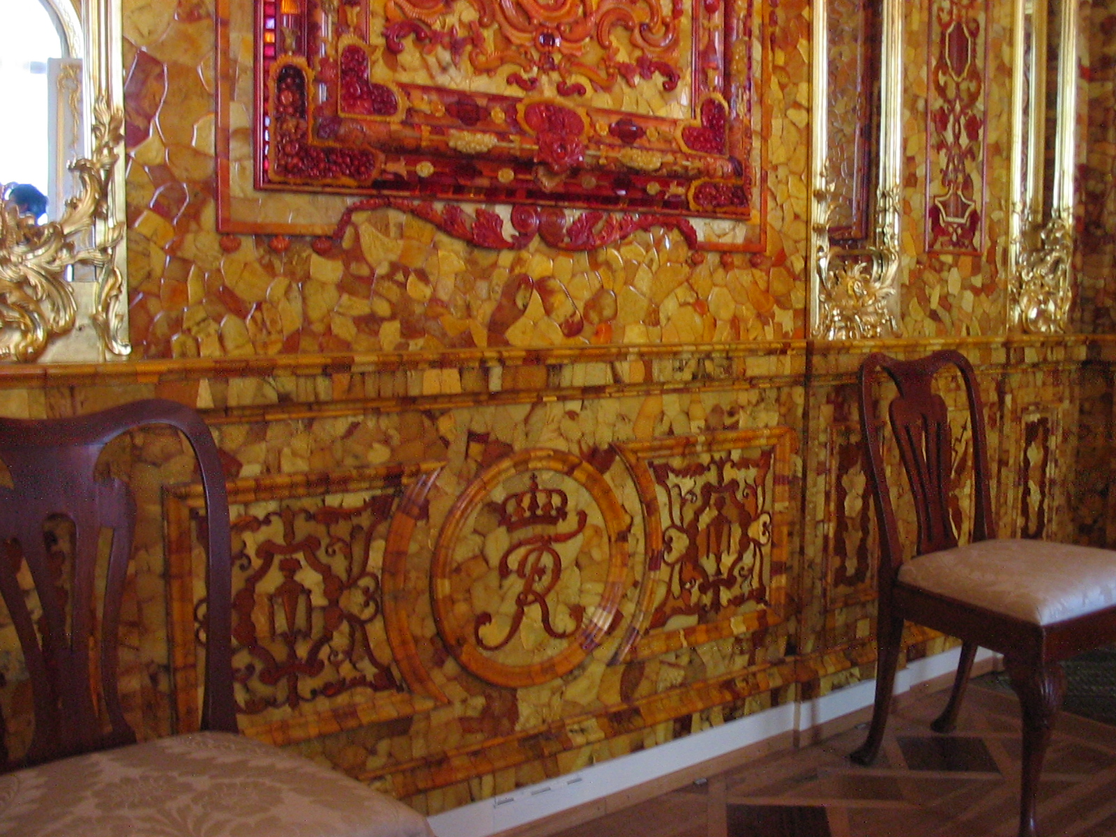 Среди многочисленных залов и комнат Екатерининского дворца есть особая комната, в которой находится самый роскошный подарок столетия. В 1716 году прусский король Фридрих Вильгельм подарил Петру I Янтарную комнату. Рельефные изображения древних богинь, флорентийские мозаики, сцены на библейские сюжеты, гербы, вензеля и короны были собраны из тысяч полированных пластин янтаря. «Восьмое чудо света» изготовили в 1709 году по рисункам архитектора Шлютера. Особо сильное впечатление янтарная комната производила в вечернее время при зажжённых свечах. Свет проникал в глубину прозрачного янтаря и камень казался светящимся изнутри. Видение представало не реальным, создавая впечатление ожившей сказки.