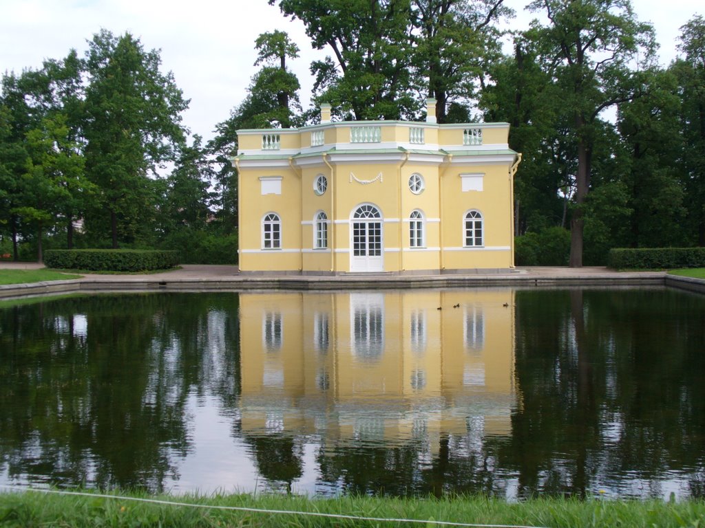 На берегу озера находится павильон «Грот». Елизавета пожелала украсить его морскими раковинами, мифологическими персонажами и морскими чудовищами. Позднее, Екатерина II превратила его в свой кабинет.