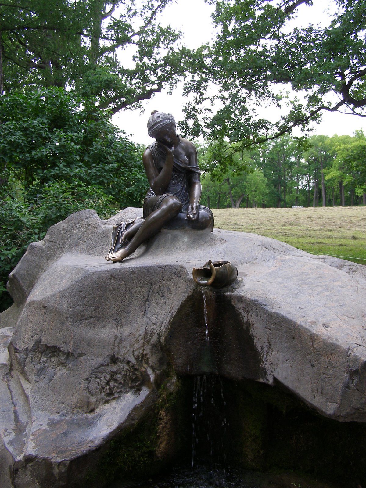 Единственный родник в парке и в то же время наиболее изящная скульптура носит название «Молочница» или, как ее еще называют, «Девушка с кувшином».