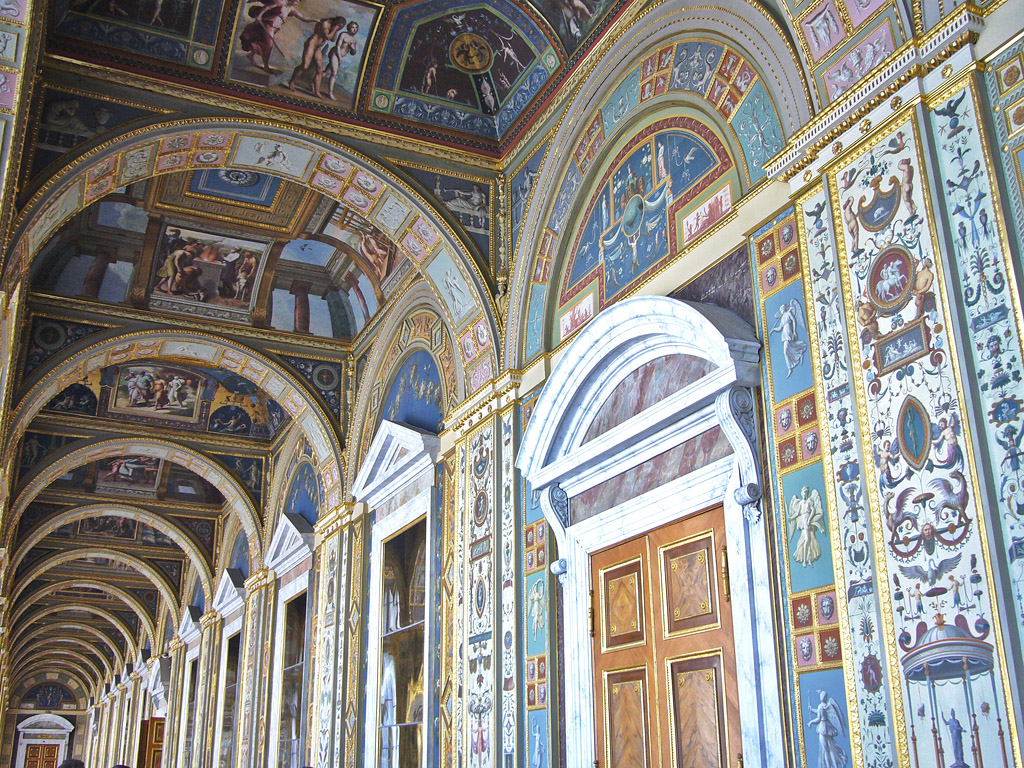 В Большом Эрмитаже расположены Лоджии Рафаэля, представляющие собой галереи с копиями рафаэлевских фресок.