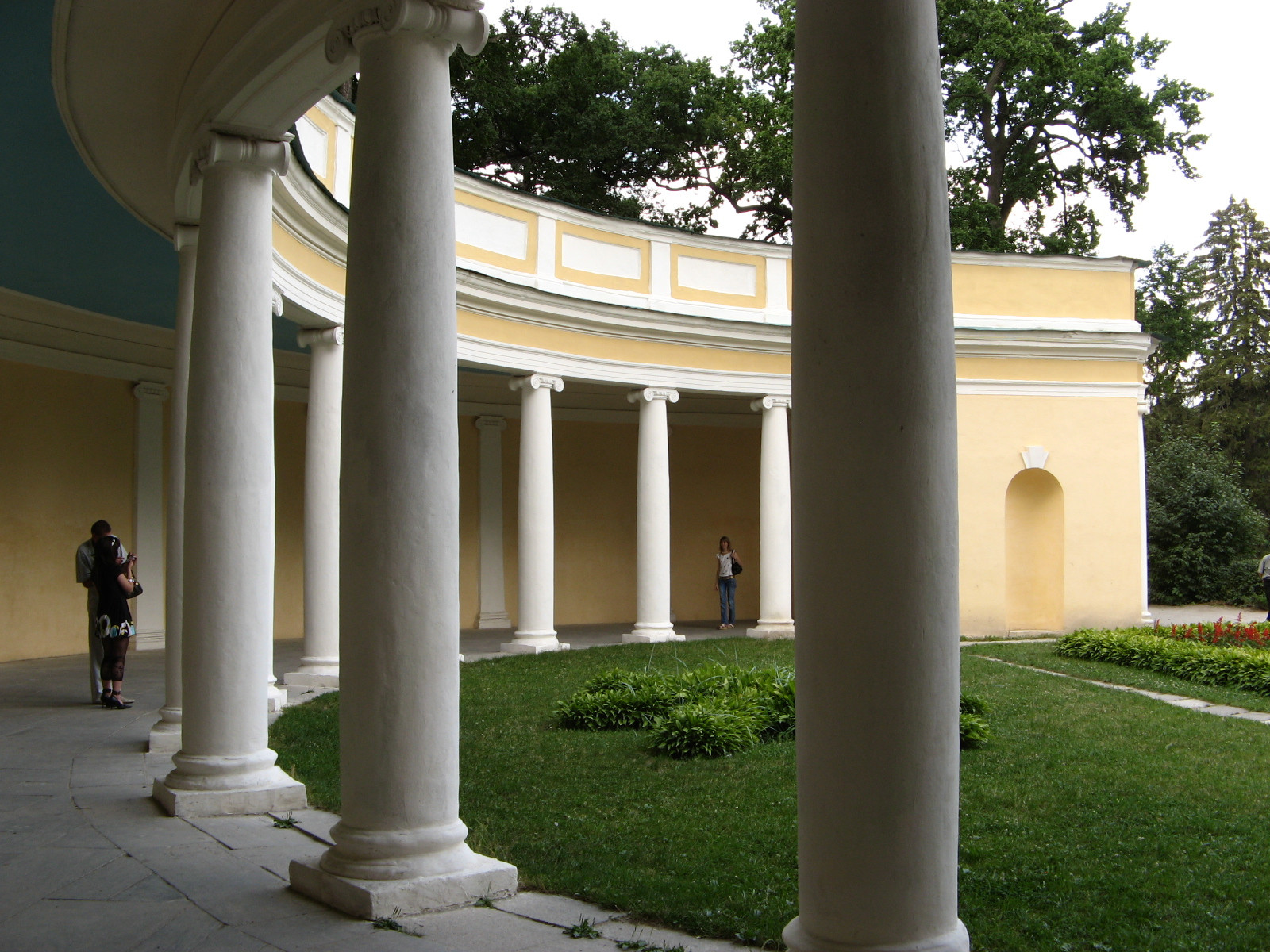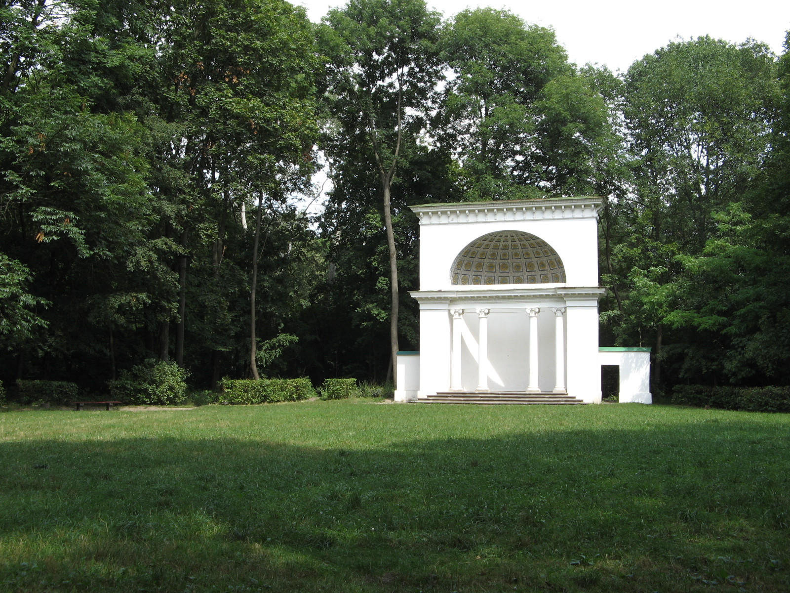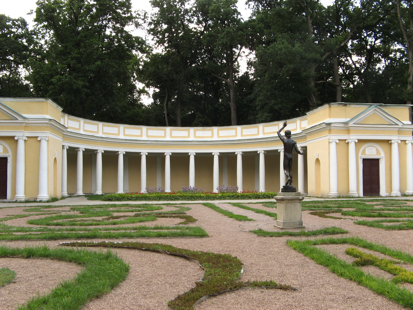 Примечательна и выстроенная в стиле древнегреческого амфитеатра Колоннада «Эхо» с ее уникальными особенностями акустики. Не менее интересно и оригинальное двух-ярусное сооружение «Руины», представляющее собой некую подпорную стену плотины пруда Лазневого.
