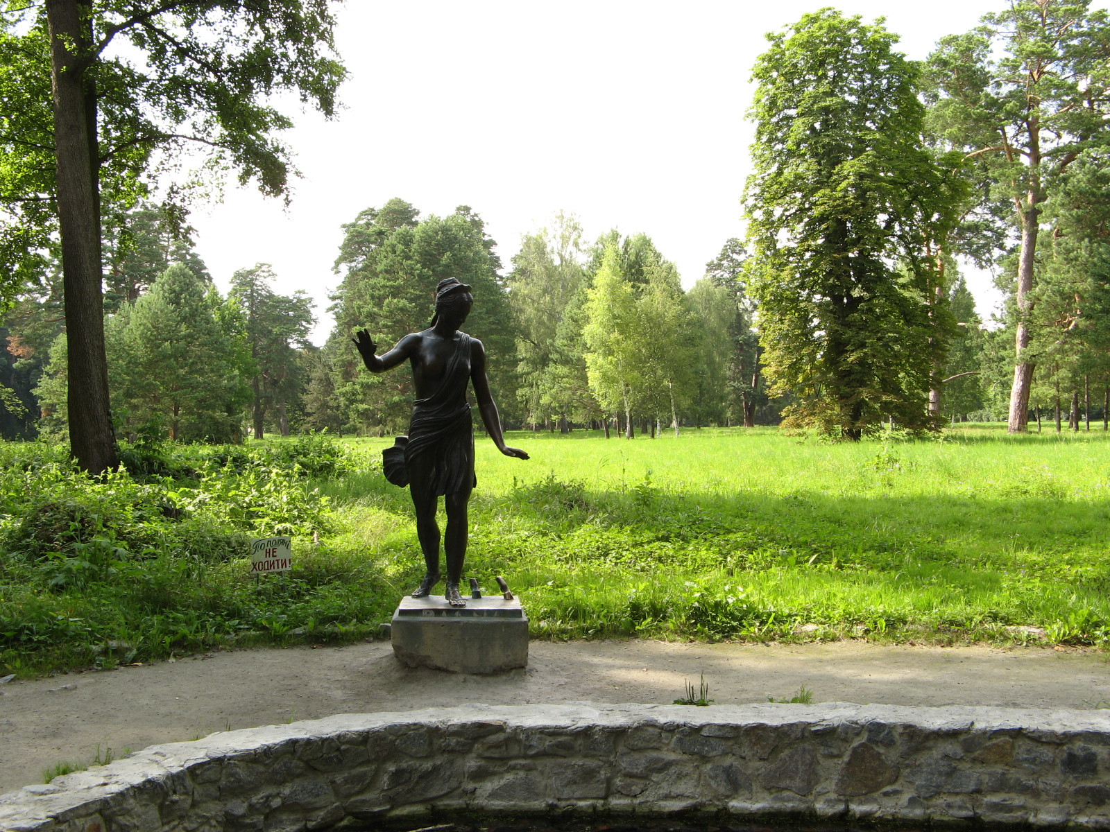 У самого входа в парк установлены памятники Пушкину, писавшему здесь свою «Полтаву», и Шевченко. Южнее главного входа находится Солнечная Поляна размером в 7 гектаров. А в центре парка расположена ровная, уклоняющаяся к Росси Большая поляна с возвышающимися темной стеной вековыми деревьями.