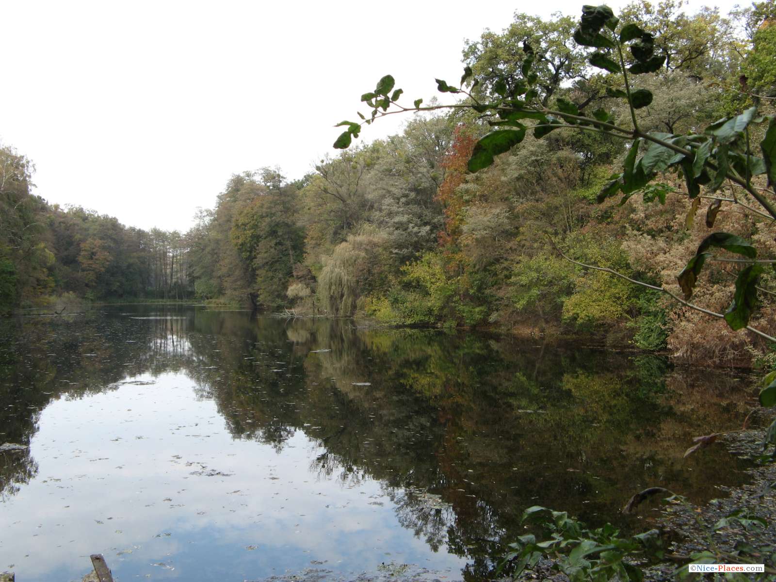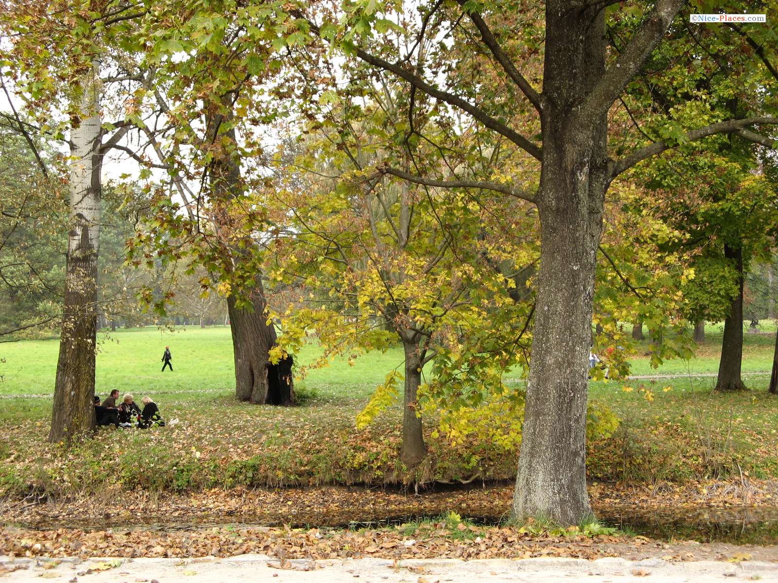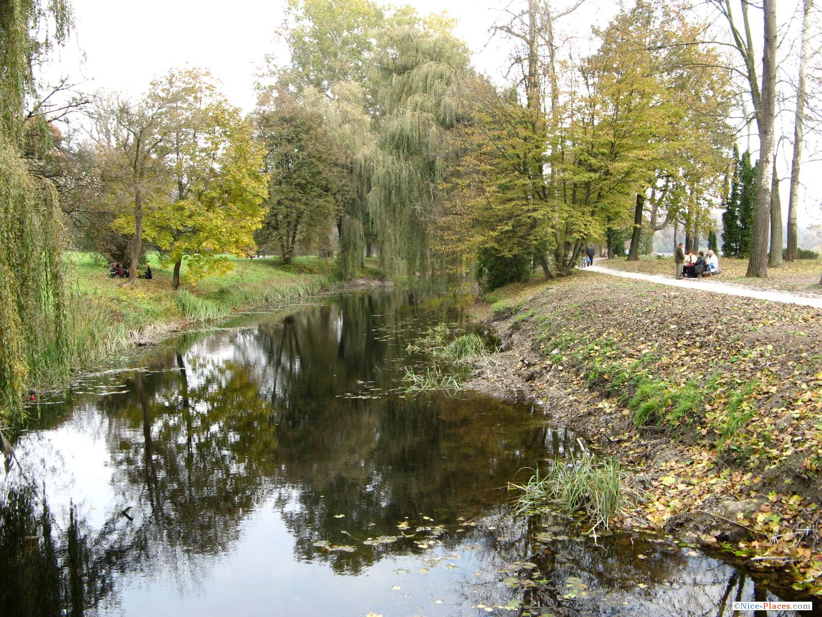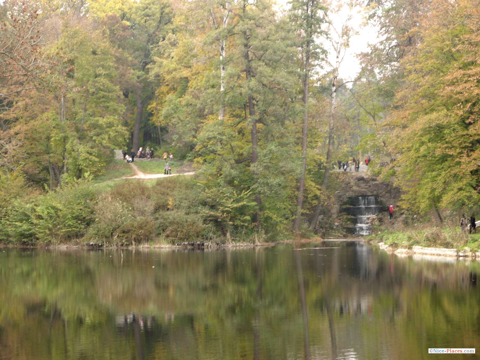 Вообще, если в двух словах, то в парке кажется, что попал в рай. :-) Так спокойно, так хорошо, умиротворённо... Озеро. На берегу, возле самой воды — два белых лебедя, а возле них — несколько детей лет 7-10 пытаются к ним подойти и покормить, причём одна девочка на расстоянии менее метра. :-) Лебеди немного боятся, но в целом спокойно относятся. На одной из аллей белки почти всё время — люди их прикармливают, при нас один мальчик лет 10-ти белку с рук кормил.