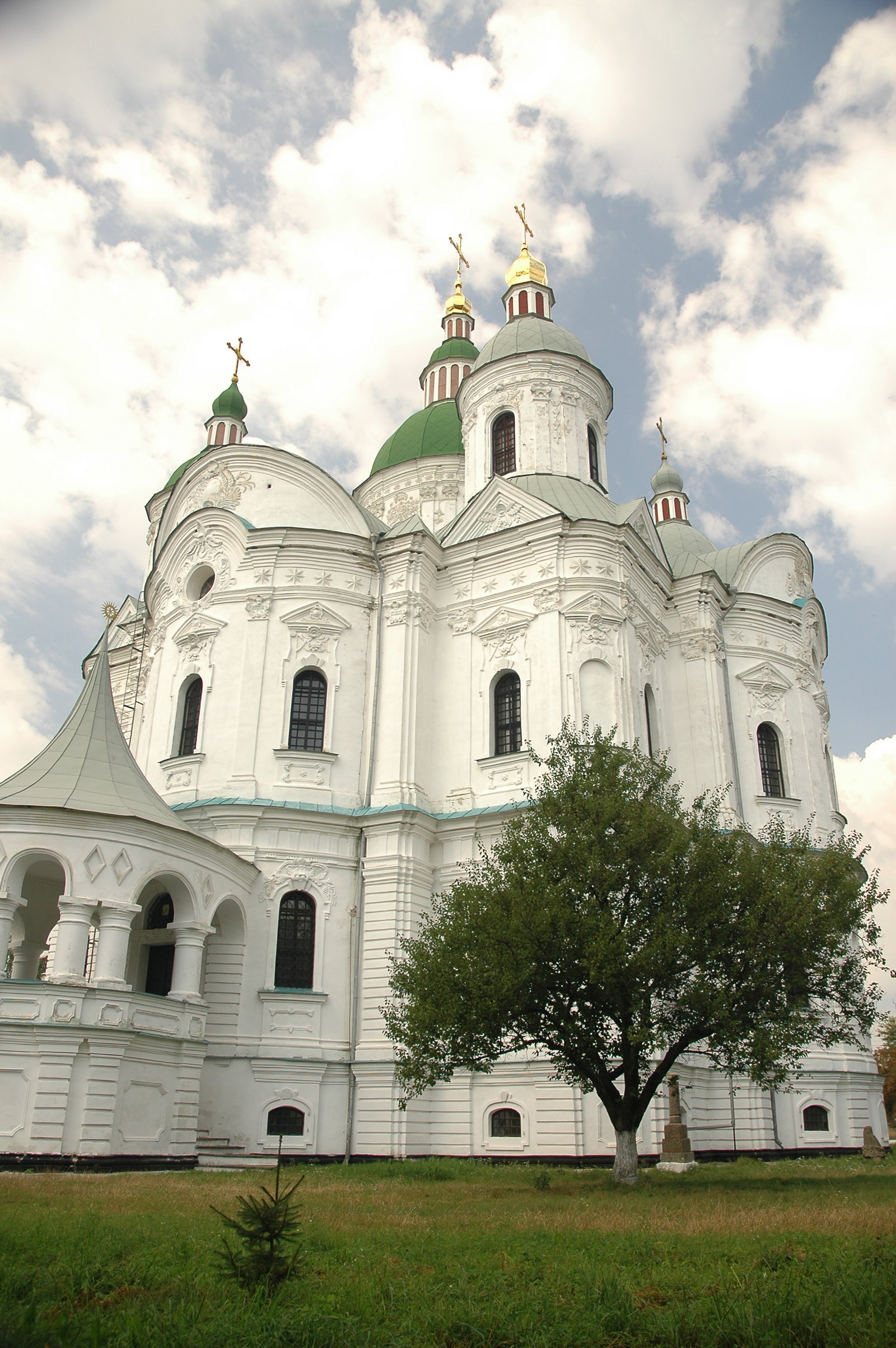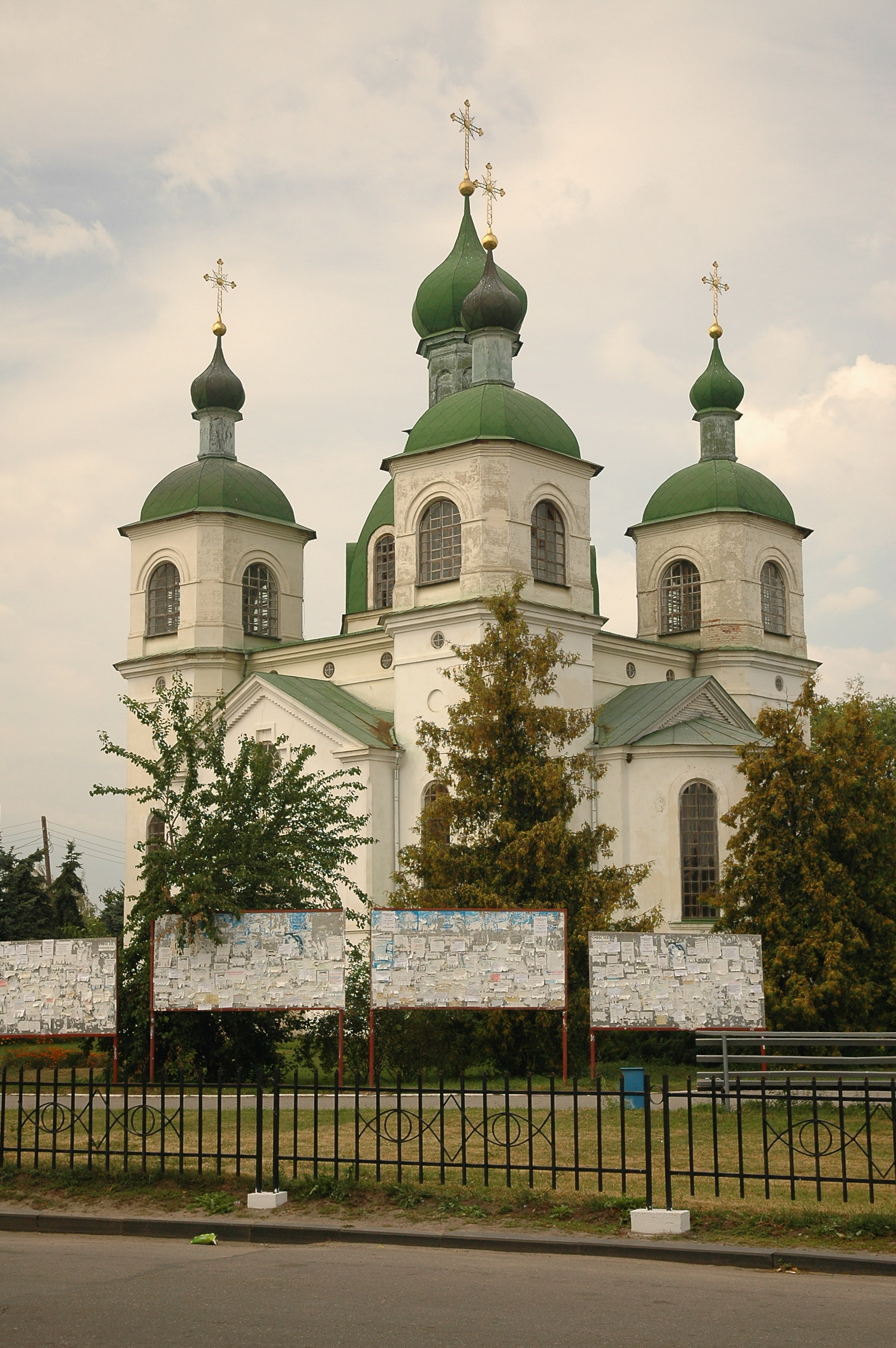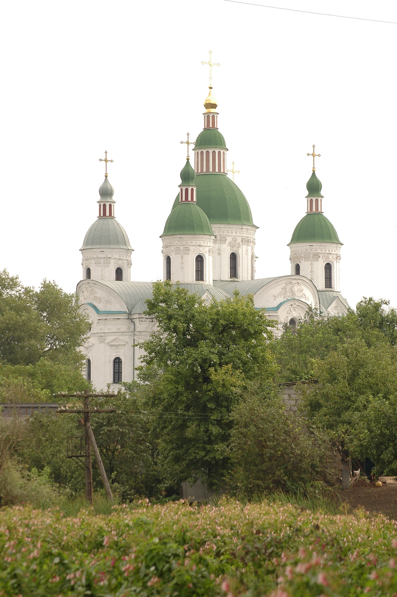 Уже на подъезде к Козельцу виднеется верхушка четырехъярусной колокольни собора. Если вам повезет взобраться на нее, можно будет увидеть одновременно купола Спасо-Преображенского собора в Чернигове и… Киево-Печерской Лавры. Сам собор внешне вроде бы и не поражает, зато внутри него скрыт настоящий клад. Это потрясающий деревянный иконостас, сделанный по проекту легендарного петербургского придворного архитектора Растрелли.