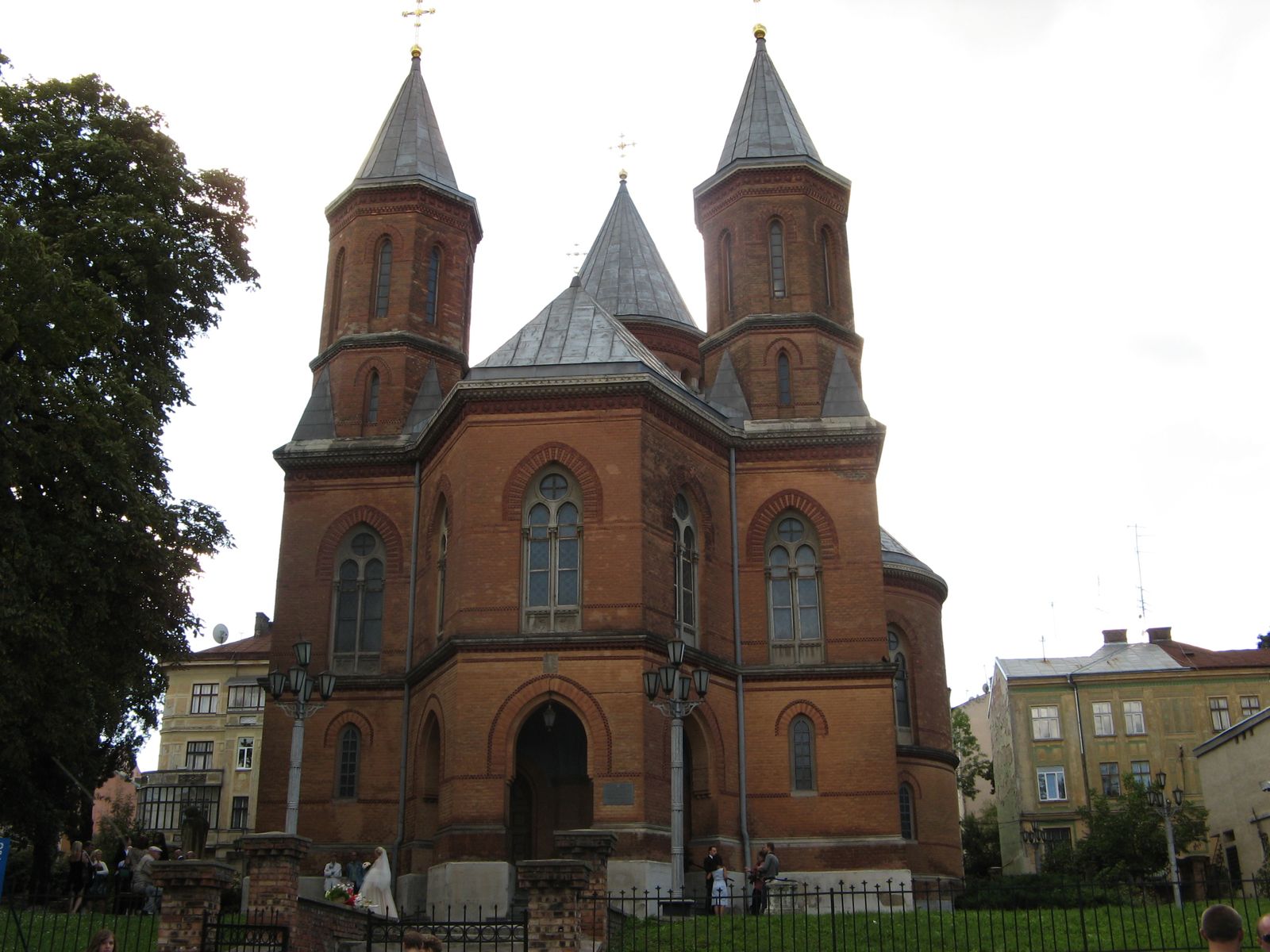 Спроектировал этот архитектурный ансамбль известный чешский ученый и архитектор Йосеф Главка. Здания были выполнены в духе эклетики с преимуществом элементов византийского и романского стилей. Сам проект неоднократно занимал призовые места на конкурсах архитекторов и был отмечен на Всемирной выставке в Париже.Улица Университетская интересна еще одним строением — это удивительное здание еврейской синагоги, построенной в 1873-1877 гг. Этот дом словно перенесен из арабской сказки. Сооружение было построено в мавританском стиле, и привлекало к себе внимание легкостью, воздушностью форм. К сожалению в 1941 здание сгорело, и после войны отреставрировано уже как кинотеатр.