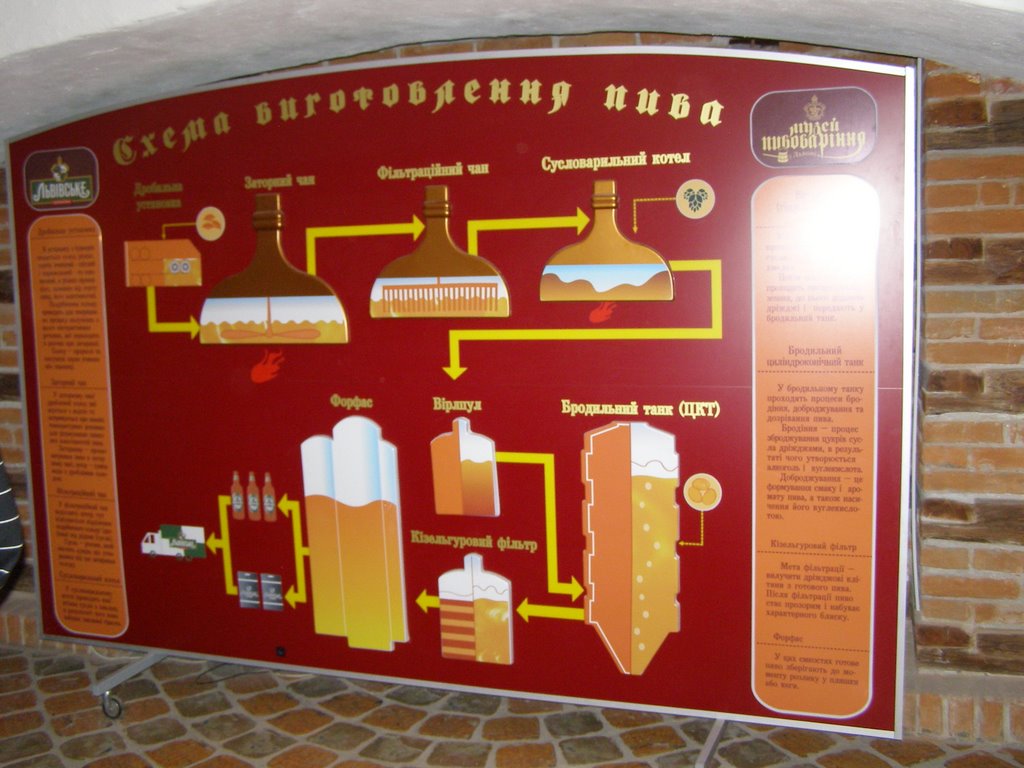Любители пива и не только, найдут для себя массу интересного в Музее пивоварения. Он открылся во Львове в 2005 году. И на сегодня — это единственный музей пивоварения в Украине. Сам он расположен на территории «Львовской пивоварни» в полуподвальных помещениях. В музее вы можете прослушать захватывающую историю о старинной пивоварне, о традициях пивоварения во Львове, о том как пиво рекламировалось в прошедшие времена. Здесь можно просмотреть коллекцию пивных бочек и бутылок, кубков и бокалов. Вам покажут макеты и настоящие агрегаты для варки пива в давние времена. Одним из самых приятных моментов посещения музея, является дегустация пива после экскурсии. Вы сможете оценить вкуснейшие сорта пива «Львовское». Ну, а если вам захочется унести «кусочек» музея на память, у вас будет возможность приобрести тематический сувенир в сувенирной лавке на территории музея.