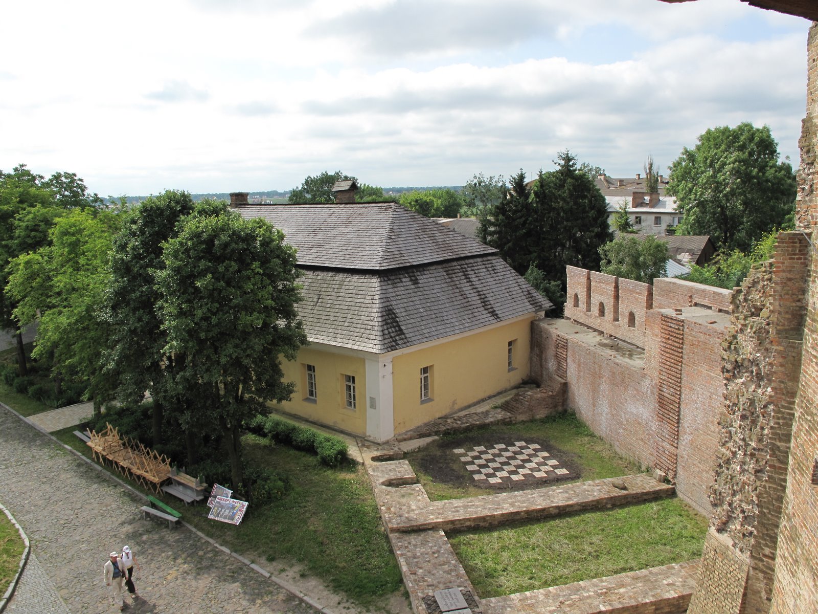 Снаружи к замку Любарта прилегал еще один укрепленный замок Окольный, который отделялся от княжеской резиденции глубоким рвом – строительство этого замка изначально велось для поселения за его мощными стенами луцких мещан, которые были вытеснены с территории княжеской резиденции. Этот замок гораздо чаще в наши дни называют Нижним, так как он расположен ниже холма, на вершине которого находится замок Любарта. Площадь Нижнего замка занимала более 6 гектаров, он был обнесен стеной, частично состоявшей из камня, а частично – из деревянных бревен, а в оборонительную стену было встроено 8 башен – 4 из дерева и 4 из камня. Окольный замок почти не сохранился, посещающие его туристы могут увидеть лишь каменную башню Чарторыйских и фрагмент стен. Сейчас на этом месте находятся жилые дома, а пройдя между ними, можно увидеть возвышающуюся над окрестностями старую башню, на которую можно подняться самостоятельно.