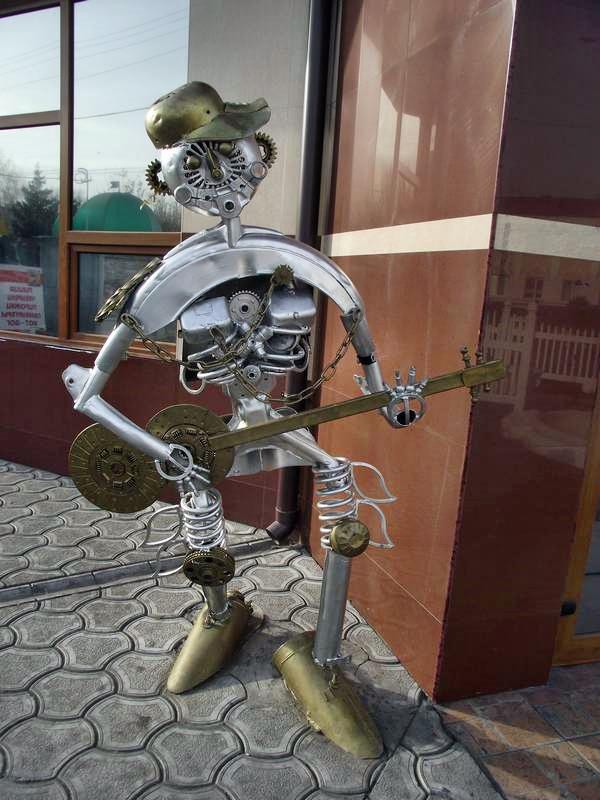 Однако, время не ждет и пора возвращаться на вокзал. В свете выглянувшего из-за туч солнца он смотрится гораздо веселее. И видно это настроение передается парочке железных музыкантов, устроившим свое шоу прямо у дверей придорожного кафе.