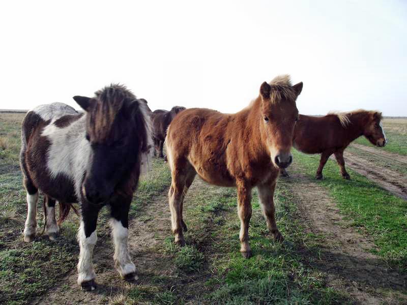 Именно так называют сотрудники встречу со стадом пони. Эти умные маленькие лошадки очень быстро сообразили, что от этих галдящих существ можно легко заполучить чего-нибудь вкусненькое. Так, что теперь, пока не покормишь — не проедешь.
