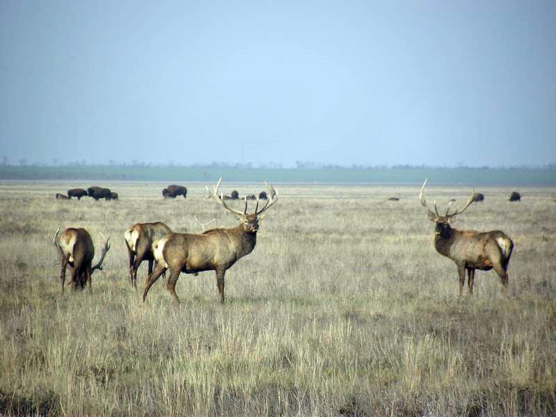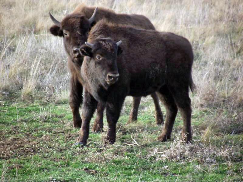 Могучие бизоны только искоса посматривают на эту ненужную с их точки зрения суету. Конечно, при массе под тонну можно многое себе позволить. А вот стадо сайгаков и минуты на одном месте не задерживается. Их здесь насчитывается 231. Кто не верит может пересчитать. Для справки: развиваемая этими парнокопытными скорость достигает 70 км в час.