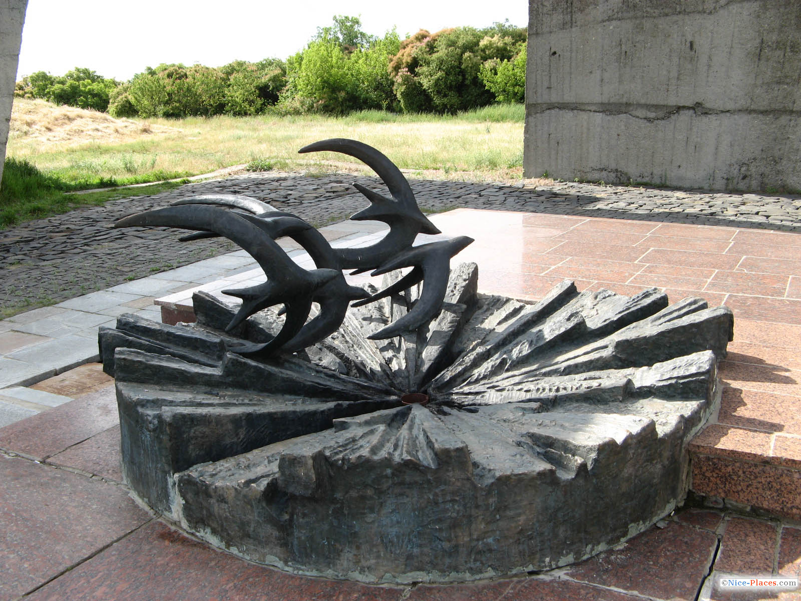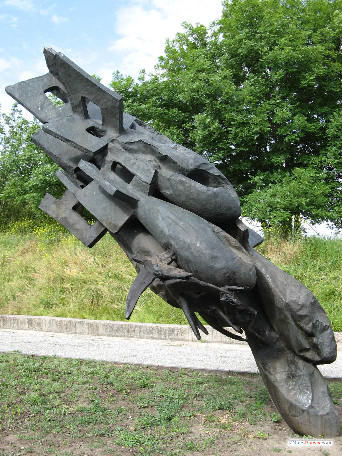 На горе находится еще несколько памятников, уже более близкой к нам истории. Это белокаменный обелиск - установленный на месте жестокой расправы деникинцев над 94 политическими узниками изюмской тюрьмы.
