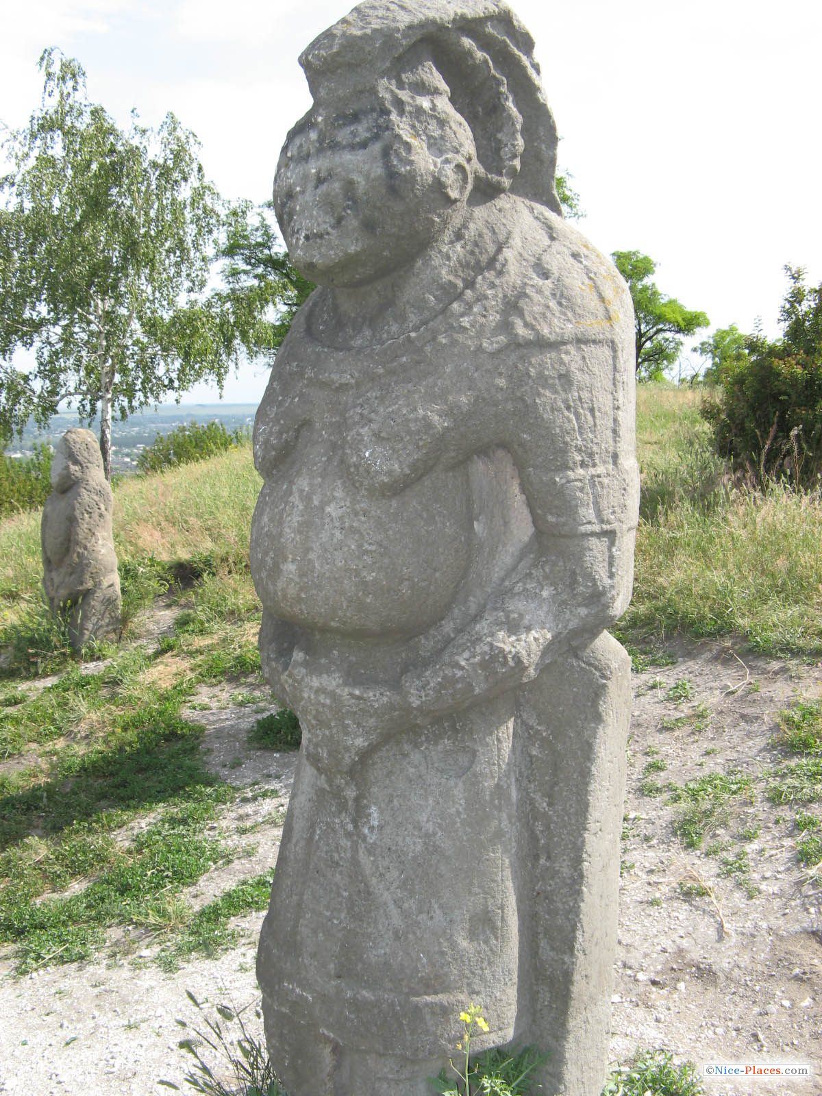 На самом склоне горы Кременец стоят каменные статуи половецких «баб». Согласно древней легенде, жившие в степи племена поклонялись богу-солнцу, но прогневали его и были превращены в камень. С тех пор и стоят каменные фигуры на степных возвышенностях, окруженные ореолом научных гипотез, пытающихся объяснить их смысл и функциональное назначение. К сожалению, неизвестно, где первоначально располагались эти каменные изваяния — их собирали со всего бывшего Изюмского уезда. Датированные примерно серединой XII века, они изображают мужчин-воинов и женщин, и несмотря на примитивность, дают определенное представление о физическом облике кочевников, их одеждах, украшениях и вооружении. Прошли столетия — забылся народ и его обычаи, только стоят в степных ковылях на вершинах курганов немые свидетели прошлого.