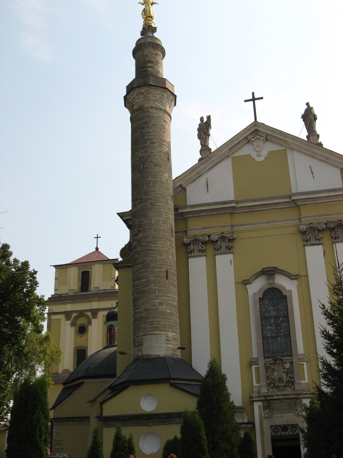 К достопримечательностям старого города относится и Кафедральный собор Святых апостолов Петра и Павла, в котором на протяжении столетий проходили католические службы. Каменный костел был построен в XVI столетии на месте расползающейся здесь ранее деревянной церкви. Во время турецкого владычества в городе он был превращен в мечеть, о чем до сих пор безмолвно свидетельствует пристроенный к костелу турецкий минарет. После возвращения данного шедевра сакрального зодчества католической общине минарет сносить не стали – на его верх водрузили фигуру Девы Марии. Богородица, возвышающаяся над городом, словно защищает его от любой опасности, она символизирует и торжество победы христиан над турками-мусульманами. В городе есть еще один старинный католический храм – Францисканский костел, построенный в XIV столетии.
